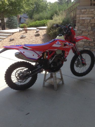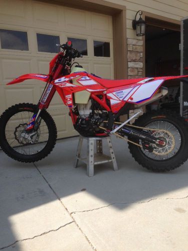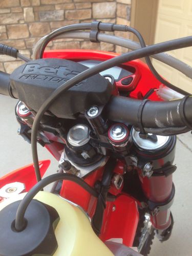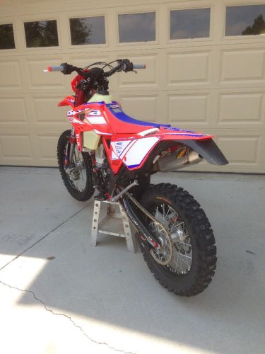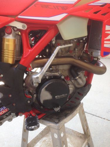 2016 Beta 430rr Race Edition 35hrs, IMS big tank, BRP Sub Mount for stabilizer (no stab included) but ready to bolt yours on, BRP chain guide, Dirt Tricks 50T rear sprocket, FMF Powercore 4 w/sparky. Bike runs perfectly and Beta's efi system is outstanding. Suspension is revalved by us, Enduro Spec and is a killer Offroad setup. Stock springs are installed, good for a target rider of 175-199lbs. If you're larger or smaller we can talk about getting the correct springs installed for you. My 2017 is on order so sadly this one must go to make room for the new bike. WILL CONSIDER PARTIAL TRADE ON CRF450x. NO OTHER TRADES CONSIDERED. Includes the following newly installed items with zero time: - pillow top grips - front and rear HD tubes - engine oil, filter and gearbox oil - SKF fork seals and fluid service - rear brake pads - front brake master cylinder - front brake line - serviced air filter Approx time on installed items: - tires 4hrs - shock service 4hrs - valves checked 8hrs - X-ring chain and sprockets 10hrs - repacked muffler 8hrs Comes with the following used/take off items not installed: - stock fuel tank - stock bar mounts - stock chain guide - spark arrester insert - stock 48T - horn - extra air filter and oil filter - spare radiator louver - stock muffler Comes with the Factory Beta Race model extras which are all new: - front number plate - hand guards - rim tape - repair manual on cd - tool kit Although I'm motivated to move the bike I won't be giving it away. They retail for $9500. STREET LEGAL Title in hand. Buyer pays all shipping expenses but would really like a face to face cash deal. PLEASE email me before hitting "buy it now". |