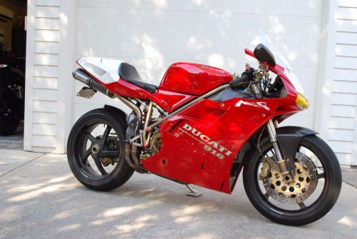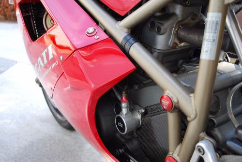 Up for sale is a very early production low mile Ducati 916. Just before production was to begin on the 916, there was a fire at the Bologna factory. Ducati moved production of the early 916's to the city of Varese where they were mostly "hand built". Because of the low numbers built in Varese and also the fact that they were hand built, these early bikes have created a cult following. This particular model has only 6483 miles on it and is in excellent condition. All the added carbon fiber pieces are original Ducati Performance parts. Frame plugs and front signals are also Ducati Performance. The Marchesini wheels are first generation hollow back (period correct for this bike). The original wheels, pegs, clutch cover, and other misc. original parts are included in the sale.