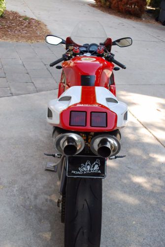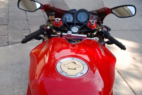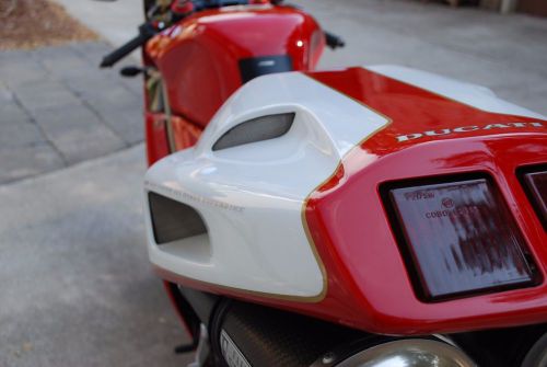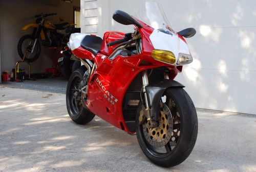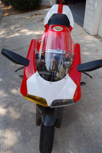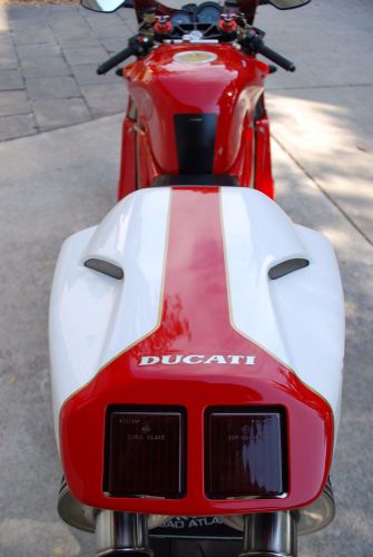 The bike has less than 1000 miles since the last major service was performed at the DucShop in Atlanta. The belts were changed again in October of 2015 due only to age. This bike has been in a collection for the last 10 years. It has been started monthly and ridden a few times a year. It had accumulated about 700 miles during the last 10 years. The bike is in excellent condition. Very clean, very well maintained. I've circled a scratch on the rear tail section in the last picture. Other than that this is a very, very nice clean example. It's a rare opportunity to obtain an early model 916 with very low miles. Check out my other auction for my Bimota Tesi 3D. |