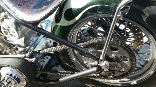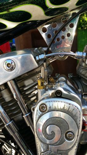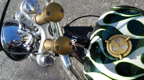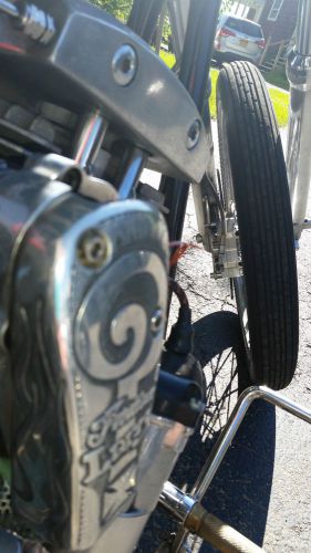So, this is a CONE SHOVEL ( 1966 ROCKER BOXES on S&S heads and Super Stock Cone Shovelhead motor ) IT STARTED BEFORE THE DEATH OF INDIAN LARRY. THIS IS NOT AN INDIAN LARRY CLONE BIKE....it contains actual parts from INDIAN LARRY & Gasoline Alley crew (rear fender & hand fabbed tank by Indian Larry/Paul Cox) (not the newer "mass produced" versions), universal transmission mount, early INDIAN LARRY Primary and CLUTCH PLATE engraved with INDIAN LARRY NEW YORK CITY; ALSO.....the bars and sissy bar hand-made by JOHNNY CHOP, and this bike features a custom engraved Carb. cover by the late great engraver SPECIFICALLY for the 1st LEGACY BIKE TO HONOR LARRY..(SEE PICTURES)...C.J.ALLEN. THIS PIECE AND OTHER ARE FROM THE VERY FIRST INDIAN LARRY LEGACY BIKE by Billy Lane, Keino, Paul Cox, Kendal Johnson....etc from the LOVE ZOMBIE BUILD....YOU CAN SEE THIS ON DISCOVERY CHANNELS BIKER BUILD OFF TRIBUTE TO INDIAN LARRY HIMSELF....................SO UNFORTUNATELY INDIAN LARRY, JOHNNY CHOP, AND C.J. ALLEN HAVE PASSED AWAY. CURRENT INDIAN LARRY LEGACY BIKES CAN REACH BUILD COSTS OF 50KUP TO 115K (SEE AUGUST CYCLE WORLD COVER and story...see picture in this listing) .....WHILE THOSE BIKES ARE GREAT.....THEY DON'T HAVE HAND-MADE PARTS BY LEGENDARY MOTORCYCLE CRAFTSMAN MENTIONED ABOVE. Handmade Leather Seat by Heile Rose...(made seat for Love Zombie) CUSTOM JOCKEY SHIFT IS CUSTOM MADE FROM A "BABY HAND MOLD FROM THE 1940'S/1950'S....... So, What we have here is a bike which was begun before INDIAN LARRY passed away, then finished by spare/removed parts from the LOVE ZOMBIE BIKE............AND......... FINALLY .....painted by ROBERT PRADKE.....WHO PAINTED INDIAN LARRYS BIKER BUILD OFF WINNING BIKES.............THIS IS A ONCE IN A LIFETIME FOR A SERIOUS COLLECTOR OR ANYONE WHO JUST WANTS TO OWN A BAD ASS CHOPPER.....THOUSANDS WERE SPENT ON PARTS AND OBTAINING THE PAPERWORK TO PUT THIS BIKE ON THE ROAD LEGALLY (TITLED AS A 2005) Donaldson....NOT a special construction. Paperwork from Paucho Frame, and S&S motor included..........................................RUNS PERFECT !!!!!...................................................................................................THIS BIKE HAS A 80" (1340) CONE SHOVEL MOTOR w/ S&S SUPER Short-E carb.....4-SPEED JOCKEY SHIFT (old school with "false" neutrals between gears) AND.....A SUICIDE CLUTCH. 3" open primary, INTERNAL THROTTLE, CUSTOM MADE BRASS FRONT-BRAKE LEVER, BRASS PEGS (BRASS GAS CAP & PETCOCK TOO)..brake resevoir hidden within primary(see pix)..magneto kick-start only...NO BATTERY TO WORRY ABOUT!!!!!......COPPER OIL LINES....Stainless Cable lines........Vintage Unity Fog-light/Headlight(see pix)........VonDutch exhaust "covers"...same as used by Billy Lane as forward controls on his "Meat-Grinder" Bike during his Biker Build-Off against Larry..(see pictures)....Custom .K-FAB CONTROLS......CUSTOM WELDED OIL "BAG"......BRASS RISERS......Quad Caliper JayBrakes on Front & Rear Discs...AND LOTS MORE SMALL DETAILS I'M SURE I'M FORGETTING.....THIS IS A PROFESSIONALLY BUILT CHOPPER....BUILT BY THE BEST OF THE BEST, WITH THE BEST PARTS!!!! ....NOT built just to take pictures for a magazine....I would ride this bike across the states with Zero worries!!! PICTURE DO NOT DO IT JUSTICE.....SERIOUS INQUIRES ONLY.....I WILL RESPOND AS SOON AS I GET A CHANCE....I HAVE SOLD OTHER HIGH END, EXPENSIVE VINTAGE GUITARS AND MOTORCYCLES ON E=BAY AND HAVE 100% FEEDBACK....BID/BUY WITH CONFIDENCE!!!!!! I CAN"T STRESS ENOUGH HOW PICTURES DO NOT DO THIS BIKE JUSTICE.....IT IS THE COOLEST CHOPPER ON E-BAY HANDS DOWN, AND IS BEING SOLD AT A VERY REASONABLE PRICE ONLY BECAUSE I HAVE TOO MANY TOYS AND HAVE BILLS. Please view the 24 detailed pictures attached to this auction....if you want to see or ask me something specific...contact me....I would be glad to send you more pix as I did have some difficulty uploading my HD pix onto E-bay......Good Luck....This is anyones DREAM Bike and is just Way Cooler than 99.9% of the bikes I see being built....AND IT HAS PEDIGREE!!!!! RIDES STRAIGHT AND TRUE AND WILL BE RELIABLE UNLIKE MANY OLD SHOVELS, KNUCKLEHEADS, PANHEADS, FLATHEADS .....ETC...GOOD LUCK |