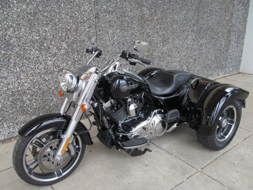 NADA YELLOW BOOK RETAIL $25,805 2016 Harley-Davidson Freewheeler Trike - 2,040 Miles - High Output Twin Cam 103 Cu. In./1690cc V Twin Engine - 6 Speed Cruise Drive Transmission with Electric Reverse - Electronic Sequential Port Fuel Injection - Cruise Control - Hydraulically linked Brake System - Bobtail Rear Fender - Custom Chrome Headlight Nacelle - Chrome Slash Cut Mufflers - Large Integrated Trunk - Passenger Grab Rails - 6.0 Gallon Fuel Tank - Two Up Touring Seat - Rider Footboards with Heal Toe Shifter - Large Passenger Footboards - 12 Inch Mini Ape Handlebars - 5 Spoke Cast Aluminum Wheels - Floating Front Brake Rotors - We don't get many Freewheeler HD Trikes so Call now!!!!!
