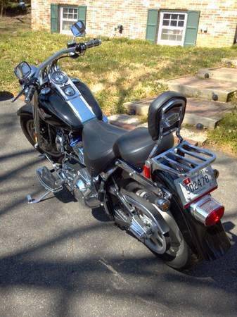 2005 15th Anniversary Edition Harley Davidson FLSTF (FATBOY) $12,000. Solid "Vivid Black" paint scheme with full chrome front end, Vance and Hines pipes and solid wheels. New speedometer with trip log and clock. Low 11,804 miles and garage kept. Bought used in 2009 (at that time only 8,390 miles) from All American Harley Davidson in Hughesville, MD as Retirement gift. Not much time available to ride as a single dad of two with one heading into college. Hate to sell but must because I hate to see a great bike go to waste. First time seller on E-Bay so buyer responsible for pick-up and any fees associated with payment option if not cash.