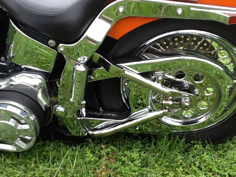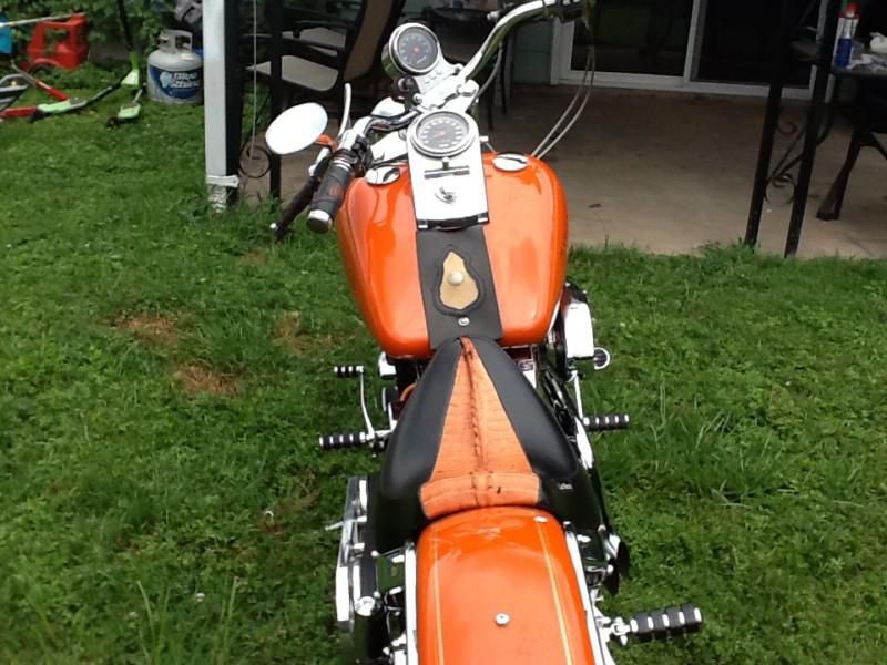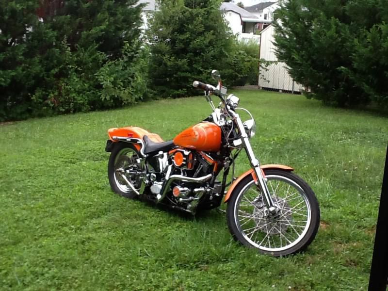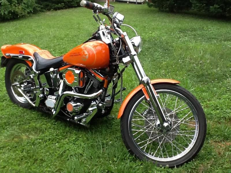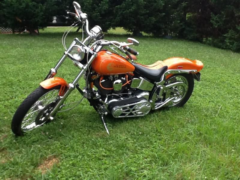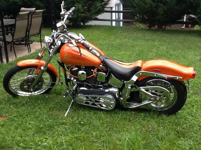 We have a beautiful 1993 Harley Softail Custom with original Orange paint that is a 9 out of 10. There are many upgrades to this bike besides the fact that it only has 6,435 original miles. Here are some of the upgrades: Harley Davidson Chrome swing arm, twisted spoke wheels, 16" rear 21" front; both have new Metzler rubber on them, 3" BDL Open Primary, a lot of motor work to include head and cam package, new Sante Exhaust {LAF, Loud as F**k}, New Fresh water alligator seat just complete last year at Sturgis. There are [3] additional double seats. For those of you who are either smokers or long distance riders and will have a need for an outlet/cigarette lighter that too is installed and easily removable. This bike is loud and fast, receives compliments every where it goes and wins trophies at every show it is in. Had it Dyno tested at Sturgis last year it was at 101 horse power at the rear wheel. This bike is also for sale locally, seller reserves the right to remove ad before the auction is over. Willing to consider trade for a early to late 90's Corvette.