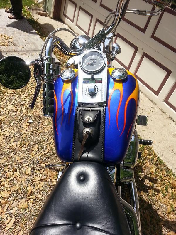 We love this bike but we are moving and downsizing thus the low reserve. Harley is for sale locally until reserve is met. Has lots of chrome, factory limited edition paint job, twisted spokes, 3" extended forward controls, quick detach windshield and quick detach sissy bar(not pictured), extra solo seat, and other misc. parts are included. New front tire, rear tire will need to be replaced soon.