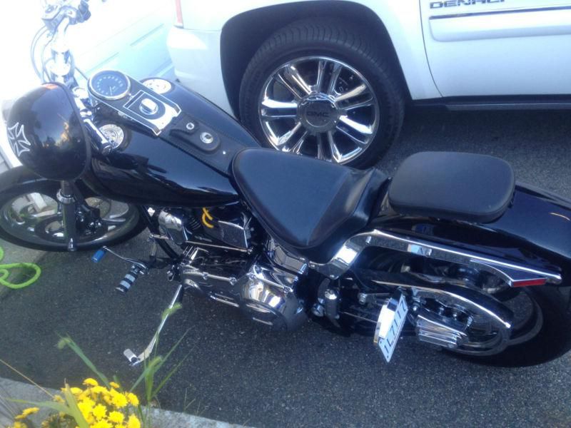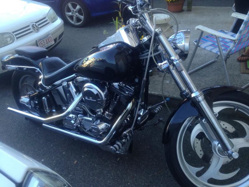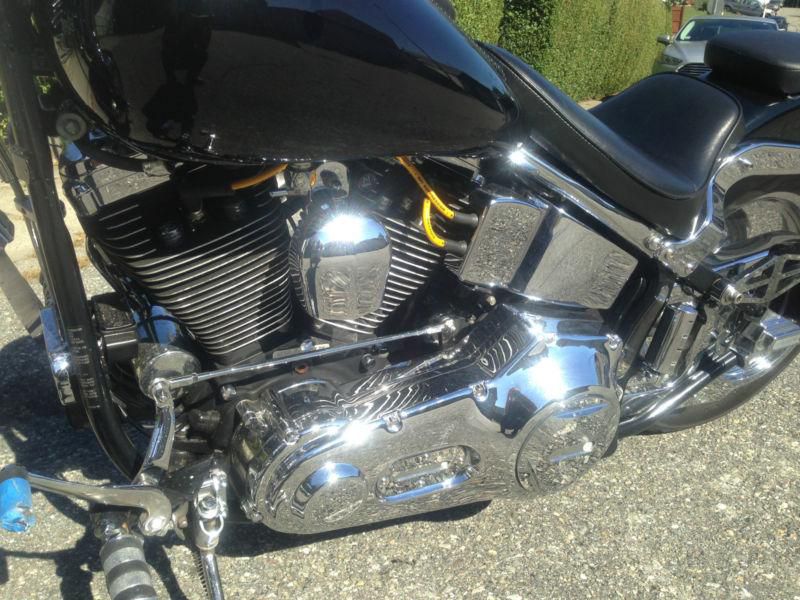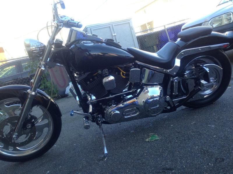 UP FOR AUCTION IS A BEAUTIFLUL HARLEY DAVIDSON FSXCUS SOFTTAIL WITH 40,000 MILES. THIS IS A BLACK CUSTOM SOFTTAIL IN GREAT RUNNING AND LOOKING CONDITION., NOT TO MENTION BIKE SOUNDS AWSOME. THERE ARE NO VISIBLE SCATCHES OR NICKES ANYWAY ON THIS BIKE. MOTOR IS CLEAN, FULL OF CROME, AND COMES WITH MANY CUSTOM EXTRAS THAT MAKES THIS HARLEY STAND OUT. HOPEFULLY PICS GIVE YOU A MORE ACURATE DEPICTION OF WHAT THIS HARLEY DAVIDSON INTAILS, AS I HAD JUST PURCHASE THIS BIKE FROM AN OLD FRIEND AND NOT TO FIMILIAR WITH HARLEYS. BUT WHAT I DO KNOW IS THAT THIS BIKE IS SELLING UNDER VALUE!!!!!! "ANY QUESTION, PLEASE INQUIRE BEFORE PLACING A BID!!!" THANK YOU AND GOOD LUCK.