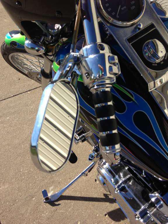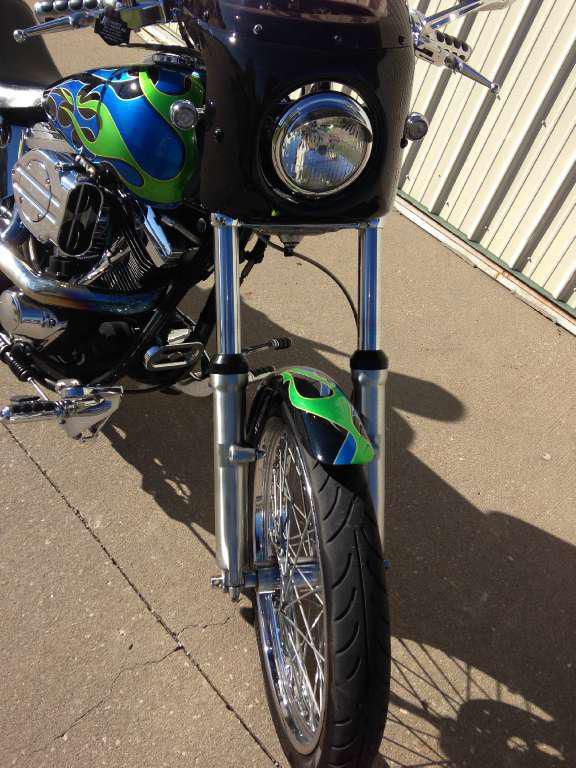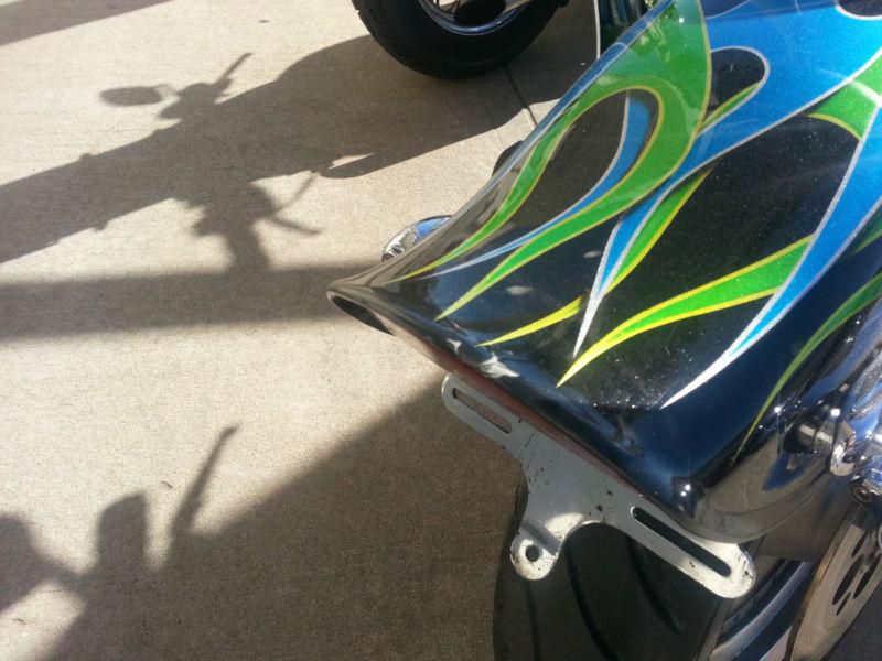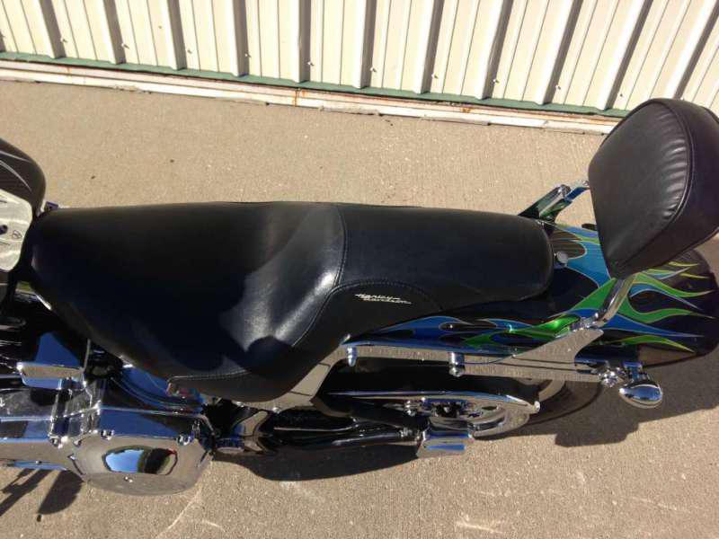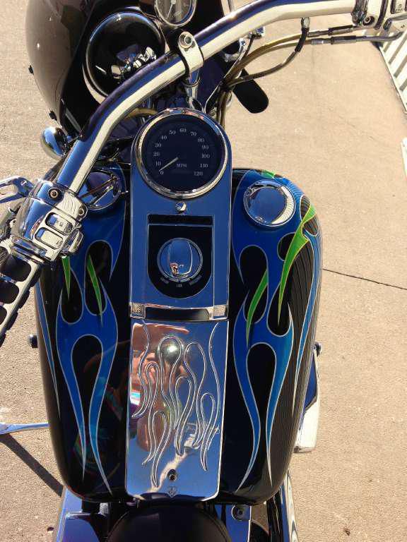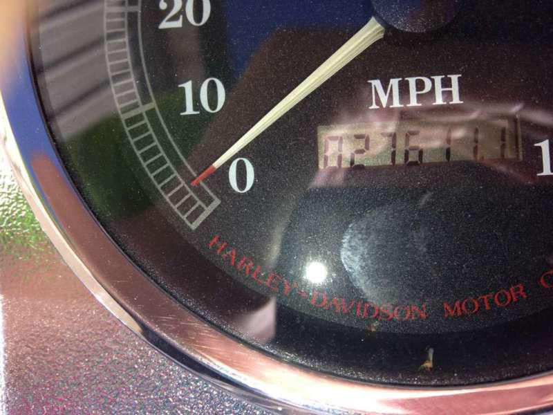 This pre-owned Harley Davidson motorcycle is in great condition. The paint is not factory, but is professionally done. Matching avon tires also in great condition. Aftermarket sweeper exhaust do show some blueing at the heads as pictured. Kuryakyn hyper charger air cleaner, detachable backrest, aftermarket fairing/windshield, and many other chrome and accent pieces. No crash damage. This bike is above average, but shows normal wear and rubs from riding. Bolts and other hardware show good, no rust. There is a small rock chip in the rear fender that appears to have "popped" the clear coat, and chipped the paint. No other obvious blems, just the typical "swirl" that all black paint gets in time. The bike has 27,611 miles, but may change a reasonable number before selling (less than 100). It is also for sale locally, so I reserve the right to end the listing anytime.
