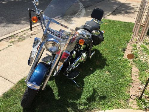 Took on trade from older gentleman a few years ago and just don't ride it much. Nice bike. Runs great . Needs nothing. Lots of chrome, detachable windshield, hooker pipes, leather bags. Gentlemen told me he had big bore kit installed.Just had starter rebuilt in May. Only real blemish on bike is a scuff on tank as seen in picture . When it was brought to me on trade he bought cheap straps to tie bike on trailer and one broke. Hard to see unless looking real close. . Ready to ride
