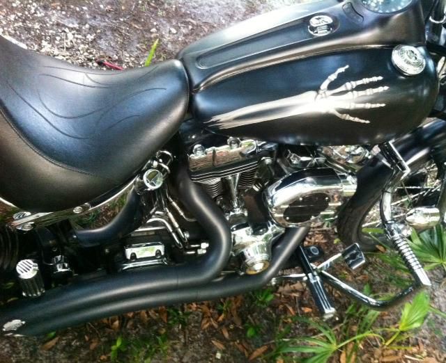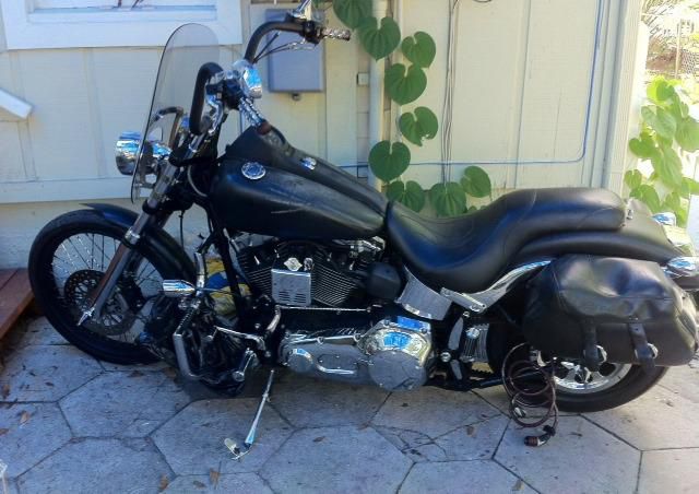 2000 Harley-Davidson Softail DEUCE, '00' FXSD Harley-Davidson Deuce. TOTALLY CUSTOM - FAST, LOUD & POWERFUL! Black Satin powder-coated and twisted chrome theme. 3 raked front end with twisted spokes. Powder-coated ape hangers. Custom Black Satin Staggered Duels. Deuce Saddle Bags. Wide glide smoked windshield. Everything on bike recently checked - clean excellent condition, new battery, low miles. $17,900.00 2148868186