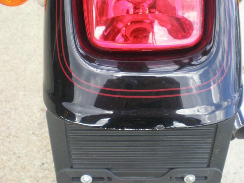 MOTORCYCLE RUNS AND RIDES GREAT, TIRES IN GREAT CONDITION, PAINT AND CHROME IN GOOD CONDITION, REAR FENDER HAS A FEW SCRATCHES AND ONE CHIP ON THE TIP (SEE PICTURES), REAR WHEEL HAS SOME PIT MARKS FROM BRAKE DUST. THE MOTORCYCLE WAS JUST FULLY SERVICED AND A NEW BATTERY AND IS READY TO RIDE.