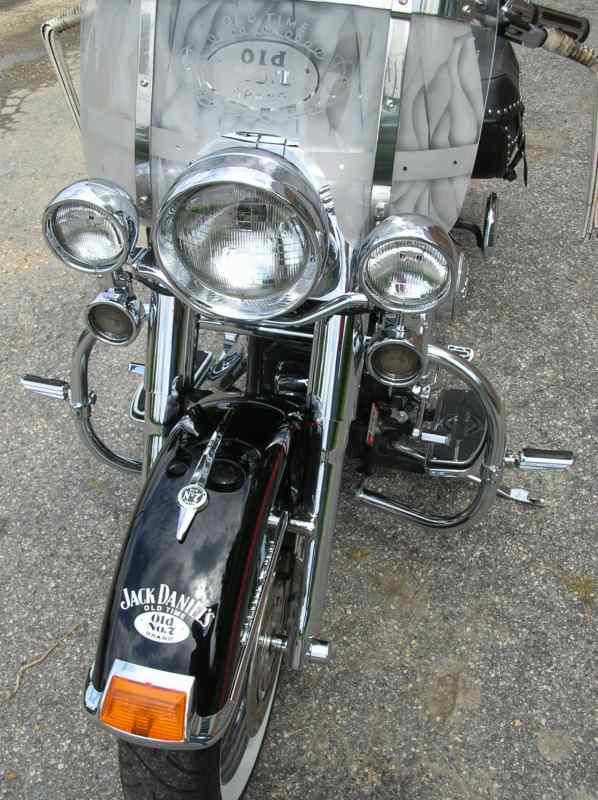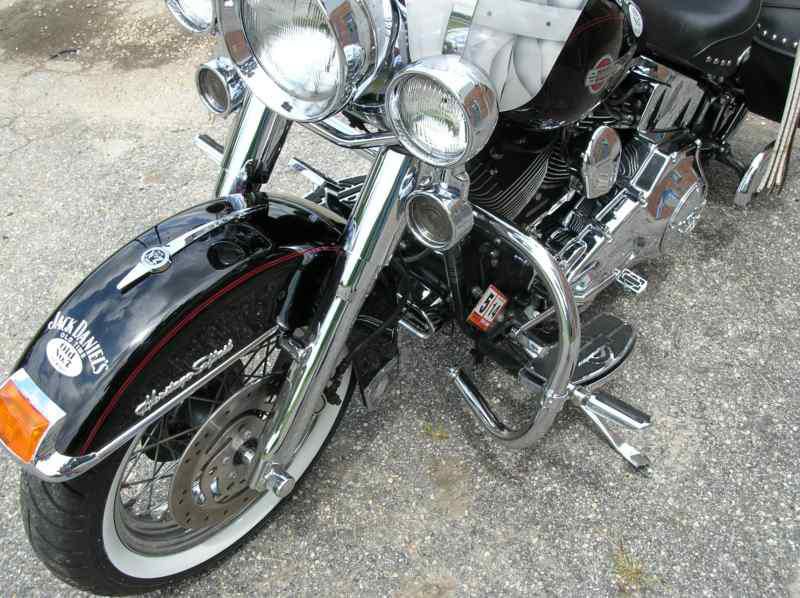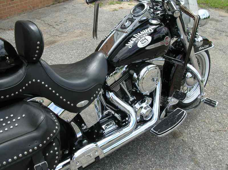 This is a Great looking ,sounding and riding bike done in Unique extras with the Jack Daniels and Harley Chromed accessories. It has been well kept inside and serviced every 3500 miles with HD synthetic oils. The bike has been pampered, is very clean and is a head turner. This bike has been serviced within the last 1200 miles with the following: New Avon whitewall tires, New rotors, brakes, plugs and new Screamin Eagle ECM. Extras include: Chromed front end, Custom JD windshield and engine covers, Vance & Hines Pipes, New HD seat driver & pasenger backrest, Battery tender, Hd dust cover, leather T-bag with rain cover and a Bike cover. This bike is only being sold due to health issues.