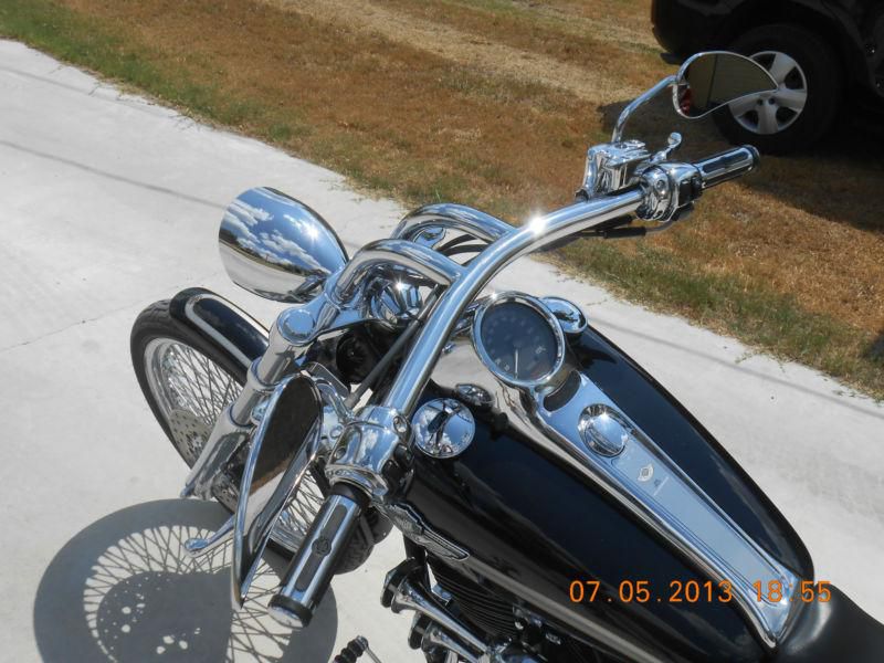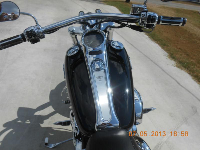 This Harley Davidson 100th anniversary has tons of added chrome, 88cu inch motor has 10,255 miles on it now. Screaming Eagle stage one air cleaner This bike has been very well kept.Chrome rear wheel, chrome 80 spoke front wheel, Carlini drag bars, chrome control covers, chrome brake and clutch levers, chrome brake rotors, Led tailight, new vance and hines big radius exhaust pipes.Bike has 180 rear tire installed. Aftermarket foot pegs and new Harley hand grips. License plate relocated to side. Paint is in very good condition, with only a couple of tiny pin size chips on tank.Chrome air horn installed. Bike has blue led running lights. Synthetic oils run in this bike only. Bike is well taken care of. Call 361-564-8238 with any questions.Local pick up only.