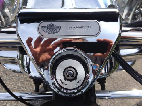 2003 Harley Davidson 100th Anniversary Road King Only 2300 original miles, the Bike runs excellent, everything works as it should, new battery and recent service, like new condition, comes with wind detachable windshield, hard saddlebags and back rest, you will not be disappointed with this highly collectible Harley.