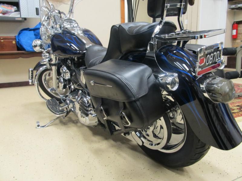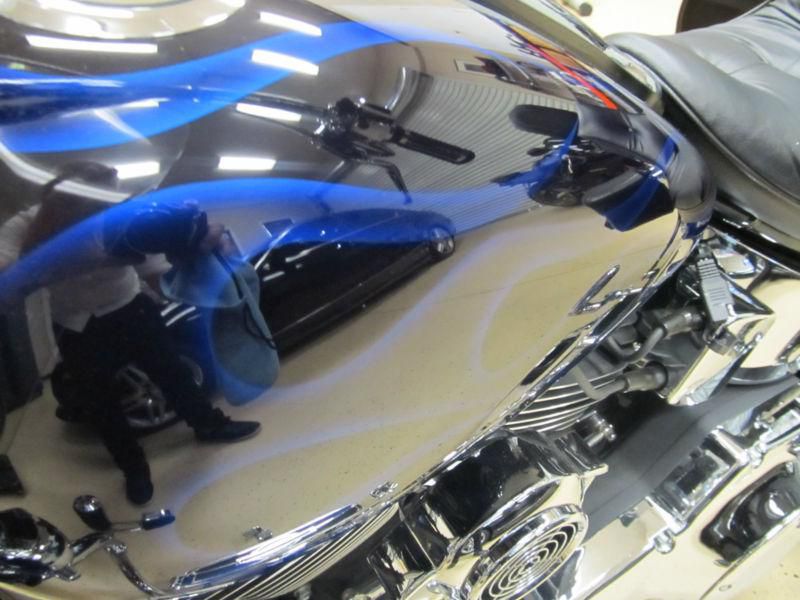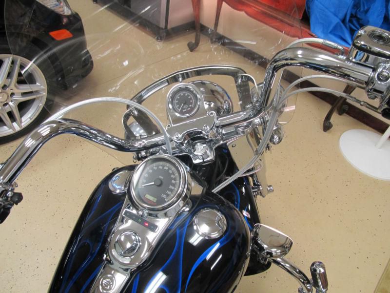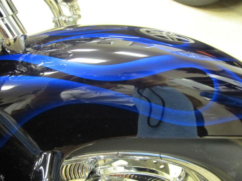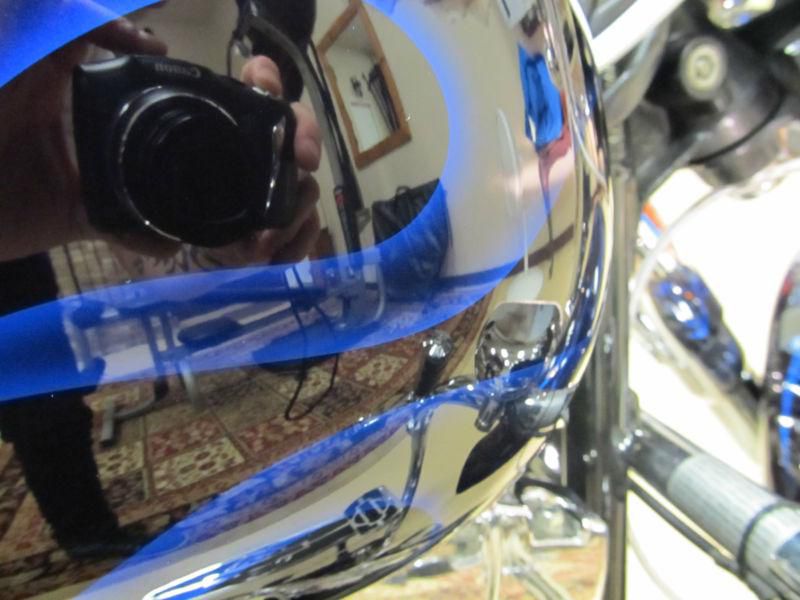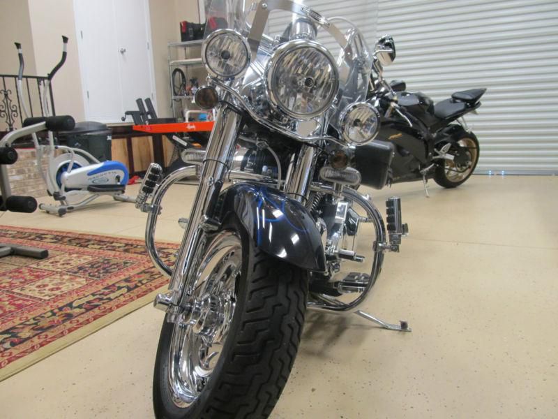 The bike has been garage kept since day one, it is fully decked out, with all the bells and whistles you could ask for. From the handlebars to the kickstand. The bike has a custom Ghost flame blue paintjob that gleams in the sun. Has mini Ape hangers, custom grips, LaPera Custom seat, Dyno'd at at just over 100 hp to the rear wheel, stage 2 HD screaming eagle kit (FULL KIT) pipes and all, Power commander with dyno tune. Progressive shocks, custom Wheels, Viper front, solid chrome back, 0 chrome peel anywhere on the bike. custom air fan to keep it cool at an idle on hot days. Blue LED glow around the bike, Everything dressed in chrome. New tires. There is absolutely nothing wrong with this bike cosmetically or mechanically. Bike has won several shows in its life, have awards for it. Would really like to see this bike go to a good home, you won't find a bike in better condition for a better price. Buyer is responsible for shipping arrangements, feel free to message me with any questions.