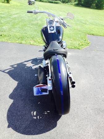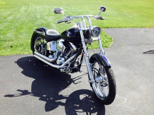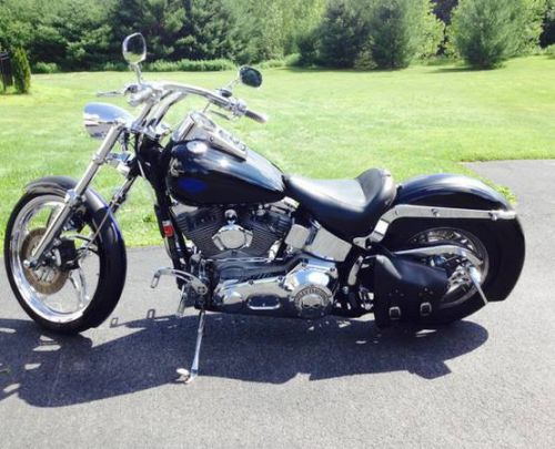 2004 Harley Davidson Softail with a Screamin Eagle stage 3 kit. The tank, front and rear hugger fenders were custom painted in 2014 with both matte and gloss finishes. The bike is equipped with Rinehart Racing straight pipes, Pro1 chrome wheels with matching sprocket, Mustang Vintage Solo seat with detachable rear passenger seat, Accutronix forward controls, Harley Davidson Stage 1 air cleaner and matching horn cover, Primo headlight with integrated LED blinkers, Harley Davidson swingarm bag, custom license plate tail light, braided lines, new front and rear brake pads, new Michelin front tire, chrome forks, Harley Davidson chrome oval billet mirrors, Harley Davidson detachable sissybar with backrest pad, Harley Davidson detachable windshield, Harley Davidson skull derby cover, gas cap, and air cleaner insert, and many other chrome parts. The transmission was recently rebuilt. Also, the starter clutch was replaced. The miles don't reflect the miles on the engine since the stage 3 kit was installed.