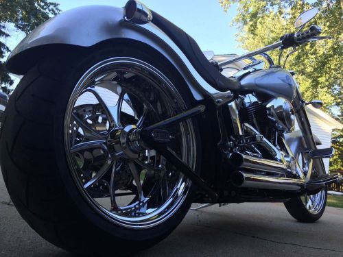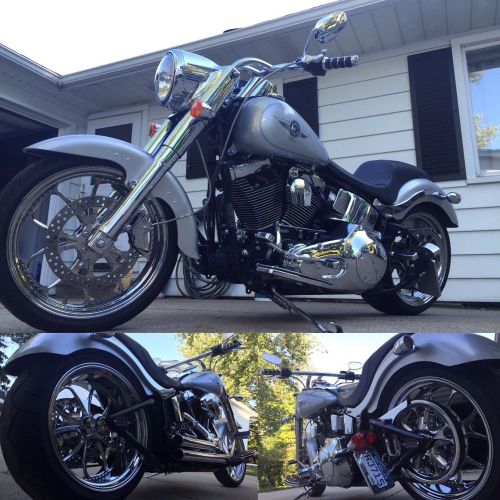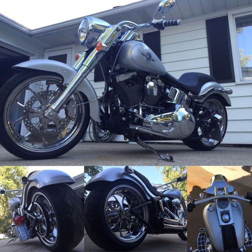 This bike is originally a 2005 Fat Boy that was customly done by Biker Bobs Harley Davidson when bought new in 2005. I am the original owner. I put on it a road king head light, grips and floor boards, rims and tires, a Phat Tire kit With a 240 tire, plate and tail light, exhaust, brake calipers, braided cables, rear view side mirrors, drag bars, exhaust, Corbin seat and much more. All work has been done by certified Harley mechanics. Original cost for bike was 17,800.00 plus 20,000.00 in extras including labor costs. All maintenance has been kept up. Asking 23000.00 or best or trade for a muscle car or 4 door jeep