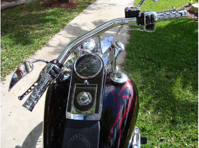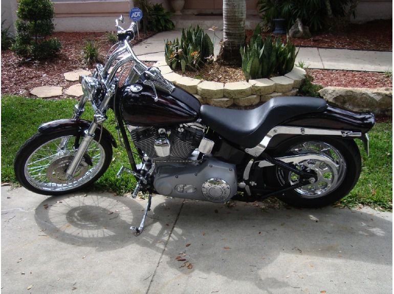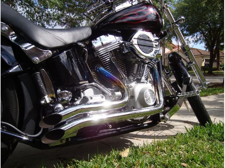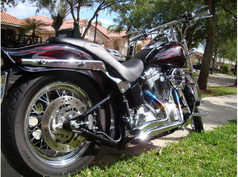 2005 Harley-Davidson Softail STANDARD, Garage and cover kept, very low miles (3782) clear and free title. One of a kind Softail with custom paint, Black w/ Candy Apple Red ghost flames. Accessories include: Chrome front end, lowered and adjustable shocks, chrome triple tree, Kuryakyn air cleaner, carb, Arlen Ness billet grips, matching shifter and pegs, removable sissy bar, LED brake and tail lights. Bike gets alot of looks, must see in person. $9,500.00