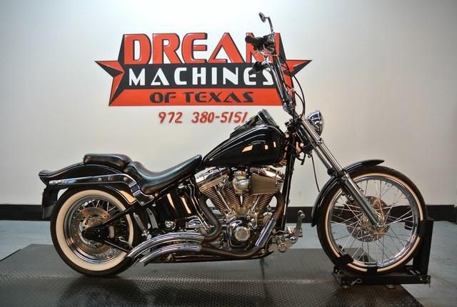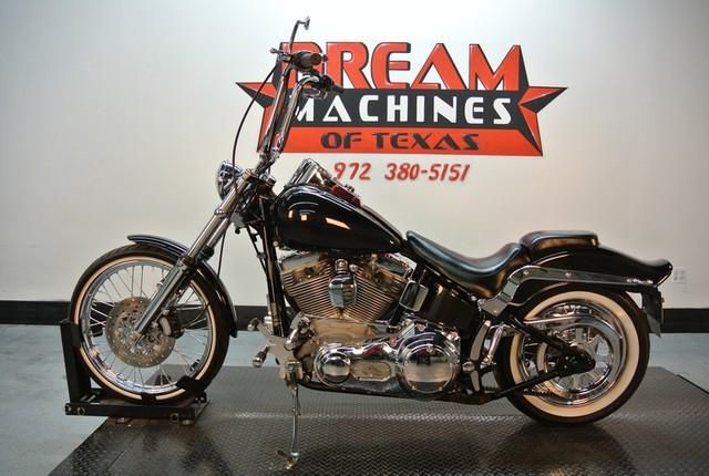 2005 Harley-Davidson Softail Standard FXST, BOOK VALUE $9,075 FINANCING AND EXTENDED WARRANTY AVAILABLE! YOU ARE LOOKING AT A 2005 HARLEY DAVIDSON SOFTAIL STANDARD (FXST) WITH 20,699 MILES ON IT. IT IS BLACK PEARL WITH PINSTRIPING IN COLOR AND POWERED BY A 1450CC (88') CARBURETED ENGINE AND 5 SPEED TRANSMISSION. THE BIKE COMES WITH 1 KEY. THERE ARE A LOT OF EXTRAS ON THE BIKE WHICH INCLUDE: A CUSTOM EXHAUST, HI-FLO AIR CLEANER, CHROME ENGINE KIT, CHROME FRONT END, FOOT CONTROLS, PASSENGER PEGS, TIMER COVER, PIVOT BOLT COVER, FRAME INSERTS, BELT SPROCKET, INSPECTION COVER, BULLET REAR TURN SIGNALS, HANDLEBARS, BRAKE/CLUTCH LEVERS, MIRRORS, GAS CAP, DIGITAL GAS GAUGE, SHIFTER LINKAGE, BLACK REAR AXLE BOLT COVER, AND LE PERA SEAT. THERE ARE NO DENTS OR DINGS THAT I CAN FIND. THERE ARE SOME SMALL TOUCHUPS ON THE REAR FENDER AND SMALL PAINT PEEL ON THE TANK. THE CHROME AND ALUMINUM ARE IN GOOD CONDITION WITH THE EXCEPTION OF FLAKING ON THE CHOKE KNOB (VERY SMALL PART) AND SMALL SCRATCH ON LEFT REAR TURNSIGNAL. THE TIRES HAVE GOOD TREAD LEFT ON THEM. IF YOU ARE LOOKING FOR A NICE CUSTOMIZED SOFTAIL, PLEASE CONSIDER THIS ONE. wE LOVE TRADES!!! *NATIONWIDE WARRANTY AVAILABLE!!! WORLDWIDE SHIPPING AVAILABLE!!! *NATIONWIDE FINANCING AVAILABLE!!! *0 DOWN SIGN & RIDE!!! CLICK ON THE ORANGE ICON BELOW AND APPLY NOW FOR AN ALMOST INSTANT ANSWER BY EMAIL *For VERY WELL QUALIFIED buyers, not all applicants/motorcycles will qualify. CALL 972-380-5151 or email to Click on any of the pictures below to enlarge