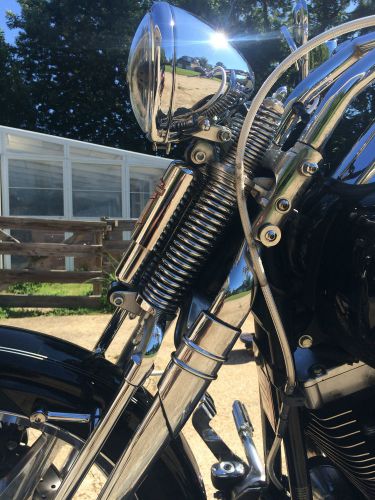All services recently completed at dealership. 25K Service and complete Springer service (Aug16) Brand New Tires (Jul16) Brand New HD Battery (Jul16) Very Clean - with all the right upgrades and add-ons. Including: 5 Spoke HD chrome Vader wheel up front Stainless steel lines Mustang Seat with detachable backrest K&N Filter Vance and Hines Exhaust Chrome handlebars, controls, and foot controls. Chrome rear turn signals and smoked lenses Bike: I've run this bike to Sturgis (2016) and to New Orleans (2014) - it is reliable and well maintained. I've had close to 17 different bikes - always had a fondness for the Springer. Have a baby coming and no need for more than one bike in the stable for awhile. Few blemishes congruent with age of the bike - only noticeable on the rear fender from a bag. Minor tear on the back rest. Email with questions |