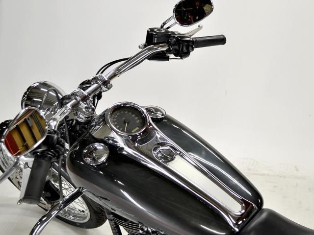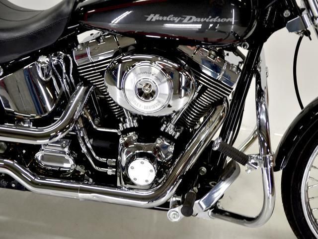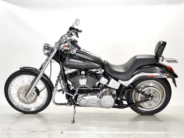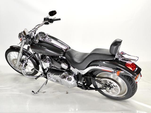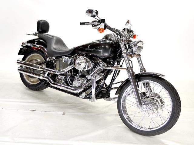 2006 Harley-Davidson Softail Deuce FXSTDI, This Deuce is nicely equipped with awesome chrome accessories. Stage I and fuel injection make it a strong runner as well as a good looker. Extras: Stage I Backrest Luggage rack Chrome forks Chrome engine guard Highway pegs Features: Fuel injected Chrome These big-twin motorcycles capitalize on Harley's strong value on tradition. With the rear-wheel suspension hidden under the transmission, they are visually similar to the 'hardtail' choppers popular in the 1960s and 1970s, as well as from their own earlier history. In keeping with that tradition, Harley offers Softail models with 'Springer' front ends and 'Heritage' styling that incorporate design cues from throughout their history. The Softail models do not have rubber-mounted engines. This led to more vibration in Evolution-engined Softails than in rubber-mounted Touring or Dyna models with Evolution engines. To compensate for this, current Softail models use a counterbalanced version of the Twin Cam engine instead of the regular Twin Cam engine used in the Touring and Dyna models.