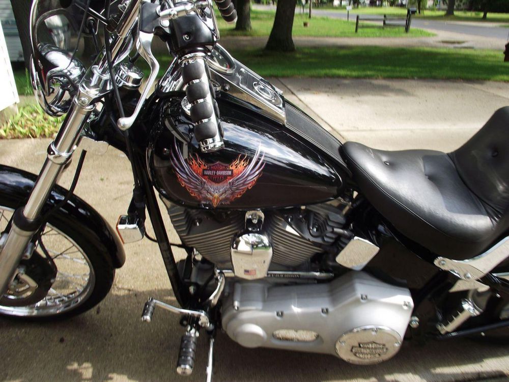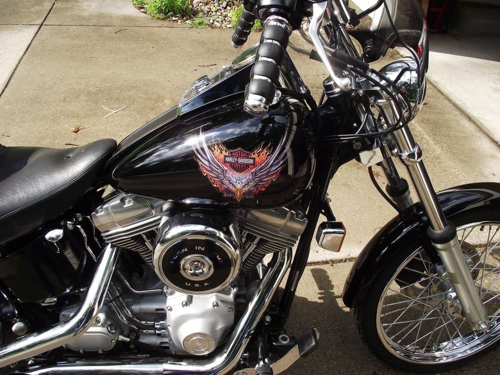 2006 Harley-Davidson Softail STANDARD, Extras: (FXSTI) True duals, Stage 1 kit with 'Born in the USA' cover, Custom tank badge, Windshield, Passenger back rest, Mustang seat, Luggage rack, Custom Z bars, Chrome pegs and Grips. Features: Fatter 200mm rear tire. Sculpted bobtail fender. Silver cast mag rear wheel with color-matched rear sprocket. Raked front forks cradling a custom 21 laced front wheel. Custom silver powder-coated engine and polished covers. $7,300.00 2312860887