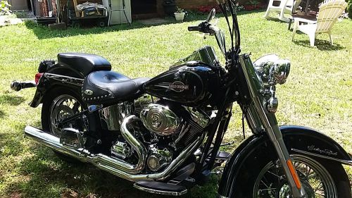 08 Harley Davidson --Heritage Softtail 96 CI 1584 CC Fuel Injected with 6 speed tranny.. Has a 2 into 1 exhaust, quick release windshield and back rest, leather saddlebags and only 19450 miles... 2nd owner with a clear title in hand.. This bike has never been down with only minor scratches on front fender.. Bike looks good, runs good, and sounds good... In 10 minutes you can completely change the look of this bike with the quick release equipment.. Bike is for sale locally so I reserve the right to end auction early... Don't hesitate because for this price it's a steal... They want $8000 for sportsters these days and 11 or $12000 for softtails look it up ... No joy rides,, I have title in Hand... Later I'm going riding are you ? $8500 any questions call Shaun @ 704-500-7934