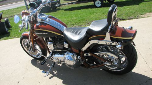 2008 Harley Davidson C.V.O. Springer FXSTSSE2 Screamin' Eagle 105th Anniversary Fuel Injected, six speed transmission, 110 cu in screaming eagle motor, Vance and Hines Pipes Sounds Great. Quick Release Backrest, House of Kolor paint. This Bike is a real head turner, tons of power, tons of chrome this is an amazing bike if you have any questions feel free to call or text me 309 645 5859 thanks Dan open to offers and trades This bike is 904/1050 manufactured. |