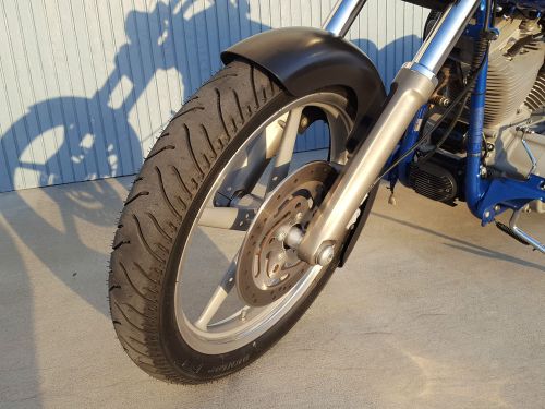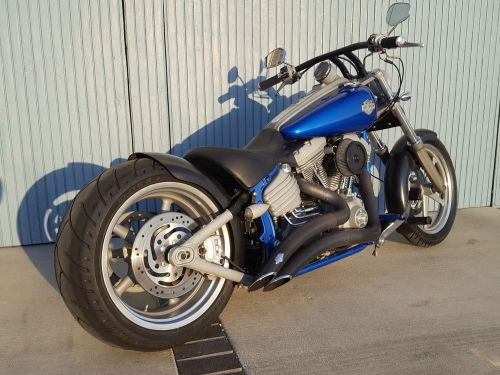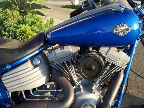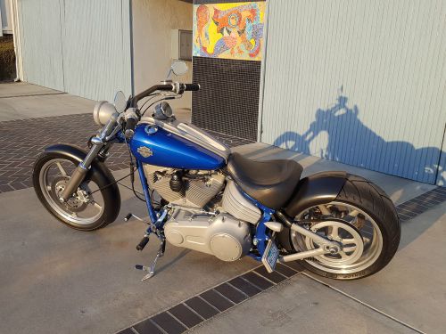 BAD ASS FAT TIRE HEAD TURNER 2008 H-D FXCW Rocker Factory Fat Tire Chopper Factory Blue paint on frame and tank in good condition Original grey powder coat finish on engine, oil tank, wheels, headlight and other parts is also nice Chopper Style Fenders are steel and are finished in manufacturer's Black coating. Other features include side mount license plate, solo seat, custom bars and grips. Super strong running 96" Twin Cam with hi flow air cleaner and Vance & Hines pipes sounds totally awesome. Smooth shifting 6 speed transmission with belt final drive Just serviced, new tires installed, runs and rides great. WAY FUN TO RIDE - GETS LOTS OF ATTENTION One Bad Ass looking bike. Out of room so it needs to go! Clean clear California title. Reasonable Reserve so Bid to OWN IT We sell WORLD WIDE bid with confidence Bike is located in Redondo Beach California (Pacific Daylight Time Zone) RIDLEY'S RIDES is an Oregon LLC Specializing in Motorcycles and collector vehicles BUYER IS RESPONSIBLE FOR ALL ASPECTS OF SHIPPING INCLUDING ALL COSTS AND ARRANGEMENTS! RIDLEY'S RIDES WILL PROVIDE SHIPPER WITH PICK LOCATION THAT IS ACCESSIBLE TO LARGE TRUCKS! Please Note----any and all models used in our listings are over the age of 18 & no animals were harmed in the photography process!
