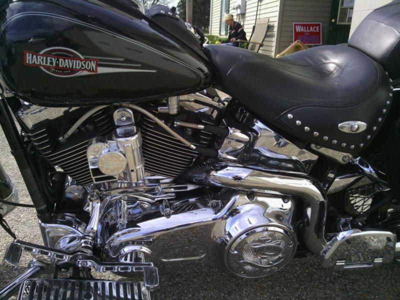 2008 HARLEY DAVIDSON HERITAGE. This is a one of a kind. Built 103+. 130+ HP 130+ TQ. To much chrome to list. 80 spoke HD rim's. Top to bottom is built with all the right part's. BYER pay's shipping or pick up. 3000 miles on NEW MOTOR. She is a POWER HOUSE.Fun to ride Fuelling cam chest and race oil pump. True and welded crank. Timken bearing cov. S&S gear drive and roller roker's Wood lifter's and woods rocker support's. Horsepower throtle body ported and polished 5.3 Horsepower fuel inj Screamin eagle 103+ heads 10.5:1 piston's 2 .08 intake 1.60 ex vale. Heads are already done She's FAST. And alot of TQ to play with.Screamin eagle race tuner. FREEDOM true dual's ceramic coating on the ex. Wood's 400G cam's They are 650 lift cam's 244 duration. 300 watt amp in saddle bag drives 2 high output speekers All hooked to you're cell or Ipod. Has windshild and travle bag that goes on back rest. Also has 2 roll bags all stadded to mach saddle bag's. only 1200 miles on new tires. Also have race tuner program disk and cables for it. This bike get's 34.5 MPG on the hyway. And 30 around town.. Any question's call 724-974-0463