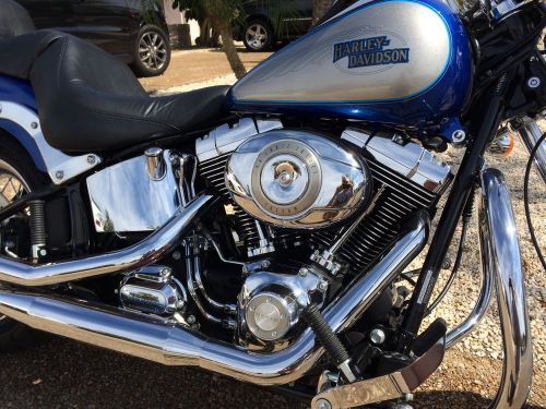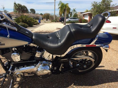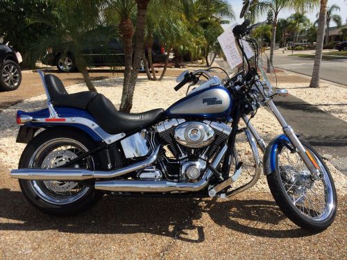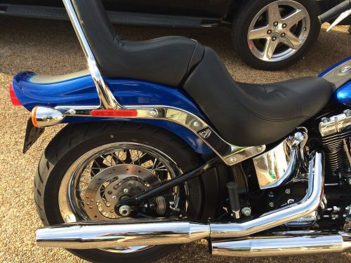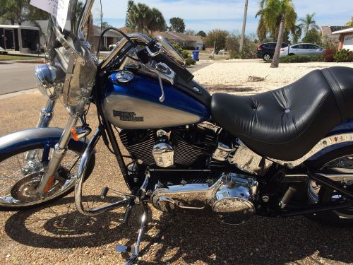 Factory/Dealer installed options include: -HD dealer installed quick detachable windshield with required turn signal relocation kit, -optional two tone blue pearl metallic and silver pearl metallic paint with pinstripes, -optional HD factory alarm system, -optional HD engine/leg guards. Has the fat factory rear tire. This motorcycle is a ONE OWNER SINCE NEW (APRIL 2010), ADULT RIDDEN BY THE OWNER ONLY, GARAGE KEPT, NEVER SEEN RAIN OR TRAFFIC, NEVER WRECKED OR DROPPED-NO DAMAGE HISTORY, As Showroom New (except for a near invisible minor scratch on right rear turn signal chrome housing and a very tiny 1/4" tear on the upper right rear side of sissy bar seat back (picture 6) from rubbing up against right side of an enclosed moving van trailer). This is an opportunity to buy a basically brand new $19K+ Harley-Davidson Softtail Custom, with several costly factory and dealer installed options at a huge discount. Multiple oil changes and the dealer 1,000 mile service have been performed. 2 electronic security keys and factory manual/docs included. The asking price of this H-D is very fair with the listed options, extremely low mileage, history, and carefully maintained and protected condition of this bike.... check NADA motorcycle price guide. TEST RIDES: No test rides without full deposit, copy of drivers license, and only by a motorcycle licensed, experienced, and insured riders. I will test ride for all others while they watch, or I will do a test ride video for remote buyers if desired. Rides and looks brand new. Everything works perfectly. LOCAL BUYERS: Sale transaction will take place at a local Florida DMV office for local buyers and buyer will receive Bill of Sale, signed clear Title, & the bike, after cash or cashiers/certified check is verified by issuing bank. Local DMV offices have video cameras & armed Sheriff's Deputies on site. REMOTE BUYERS: Bike will not be shipped to remote buyers paying by check until check fully clears bank, approximately 10 to 14 days, due to widespread bank check fraud. Upon payment by check, buyer will immediately receive a Bill of Sale marked "contingent upon verification & receipt of good & valid funds." |