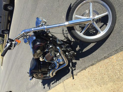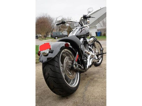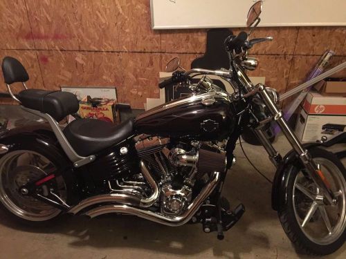 For sale is my Harley Rocker C. I am the second owner, I bought it in March of this year, but I have to start saving for a house. It looks like a rigid chopper, but it is actually a softail. This the "c" model, which means that it has all the chrome covers and housings. It has the extended foot controls, but comes with the originals as well. It is a major head-turner, and a blast to ride. It has the following upgrades: -Tuned with a Vance and Hines fuelpak -Screaming Eagle Heavy Breather Intake -Martin Brothers Daisycutter pipes -Aftermarket amber LED running lights -Aftermarket Seat (forget the manufacturer) but it rides much lower/nicer than stock -Aftermarket Passenger seat -Smoked Front Turn-signals (not pictured) The battery was just replaced in March 2016. It has only had Harley synthetic oil, and 93 or better octane gas. This bike has been kept in a garage its whole life, and has been babied. I have the original seat (with the fold-out passenger seat) and will include the Harley Maintenance Guide with it. I'll also include a Harbour Freight Motorcycle jack, a battery tender, and a cover. |