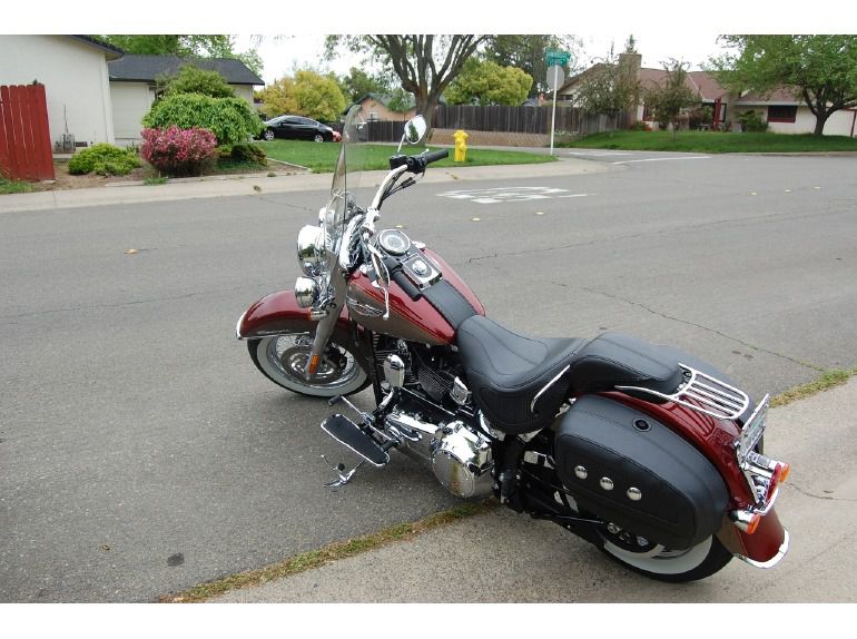 2009 Harley-Davidson Softail DELUXE, 2009 HD soft Tail Deluxe. Beautiful two tone paint. I am the original owner and have all the parts that were replaced with chrome, including shifters, brake pedal, passenger floor boards, passenger pillion. This bike has an engine gaurd and highway pegs, windshield and bag, locking saddle bags, plus cover, all with low milage. This bike is a head turner. $16,499.00