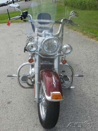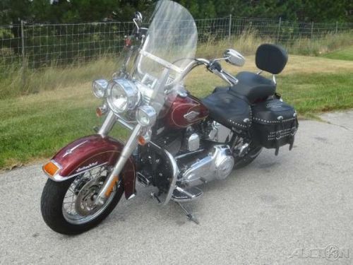 Fresh trade ... a really nice '10 Heritage Softail Classic. In Red Hot Sunglo, it's a blaze from the past fully-equipped with original dresser spirit and modern touring capabilities. Nothing rides quite as nice as a Softail and this one looks like it was very well maintained. Great city cruiser that can double as a touring bike. 6-speed trans and a 5 gallon tank keep you out on the road ... and doing it in style!