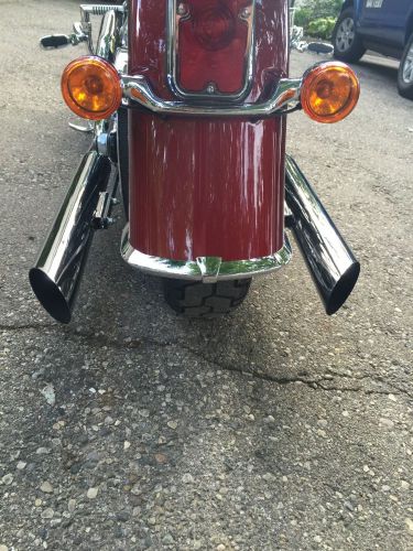 6500 miles, Red Hot Sunglo, Stage One Upgrade, Samson True Duals, Progressive rear shock, Lindby Bar w/ 6-way adjustable Highway Pegs, Lepara Bare Bones Solo seat, helmets included.