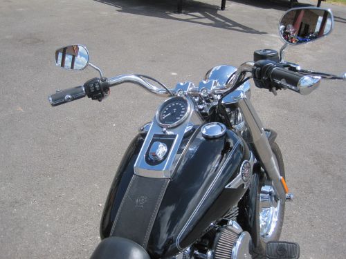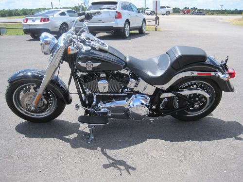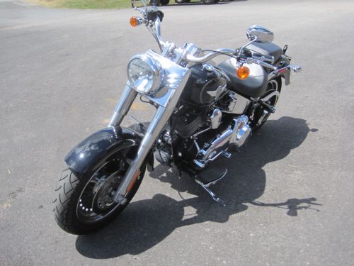 The 2012 Harley-Davidson® Softail® Fat Boy® FLSTF is one of the quintessential cruiser motorcycles. Hearkening to the "hardtail" choppers of the '60's and '70's, the Harley-Davidson Fat Boy motorcycle keeps that heritage alive more than forty years later. The FLSTF Fat Boy is the original "fat custom" bike—laid-back and luxurious with an unmistakable profile on the road. This Harley Fat Boy features a new, larger air-cooled Twin Cam 103™ Harley engine with 6-speed cruise drive transmission, providing more power for passing, hill-climbing, and riding with passenger and luggage. This bike has just a few small little hiccups, the front fender has some deep scratches and the very bottom of the rear fender is scratched as well. This is only cosmetic and doesnt show any signs of being laid down. The bike mechanically is perfect, it has 2 into 1 aftermarket exhaust that sounds incredible. The bike also has a few other chrome goodies that have been changed out. The tires are in great shape and overall this bike is ready to venture down the highway. Call us with any questions you may have at 979-733-8444 Charlie or Wade