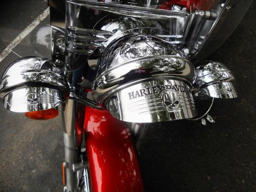2. Dynojet Power Commander V fuel module ($350) 3. Dynojet Auto Tuner that automatically adjusts the Power Commander V settings. ($430) 4. Cycle Sounds Rock Box and waterproof 200W speakers ($900) 5. Linby Highway Bar ($349) 6. Skull Mirrors ($100) 7. LED Rear tail lights/blinkers0 (not the brake light) ($180) Also Chrome headlight and fog light visors. It also has a Screaming Eagle Stage 1 air filter. The bike has never been dropped or involved in any type of accident. It has always been garaged. It just had an oil change and a rear brake pad. That surprised me but they said it needed one. You will get the software for the Dynojet tuner and two half helmets. There is one very tiny ding on the fuel tank and a scuff on one of the removable saddle bags. I paid $1700 for five years of tire and wheel coverage that I will transfer to the new owner. It expires on 1/5/2018. Please email me with any questions. |