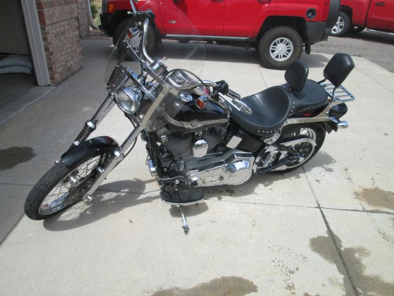 Up for auction is a 2003 Harley Softail standard with lots of upgrades, lots of extra chrome has been added including outer primary, clutch cover, transmission cover, lower legs, upper and lower belt guards. A Corbin gel seat with drivers backrest makes this a great highway bike. It has also had heritage floorboards installed for a real comfortable ride. A special 100th anniversary detachable windshield to keep the bugs out of your teeth. Slip on mufflers for a great sound. Recent service included full synthetic oil change, new fuel pump and injectors, new battery and new tires. Adult ridden, never dropped or wrecked...