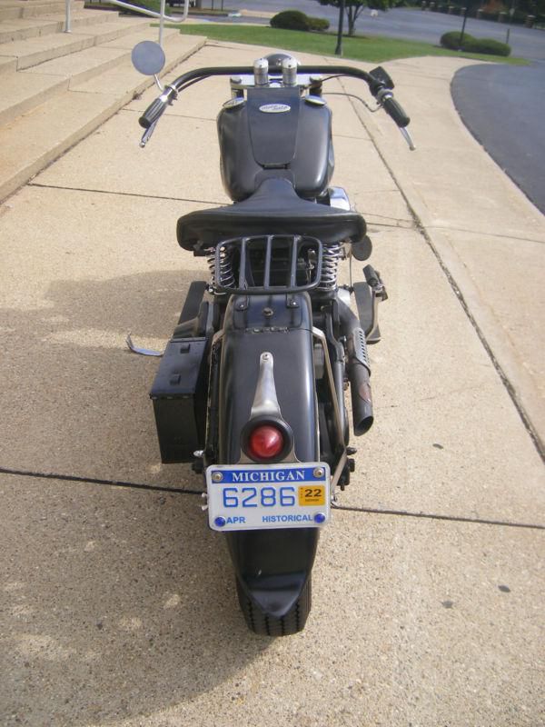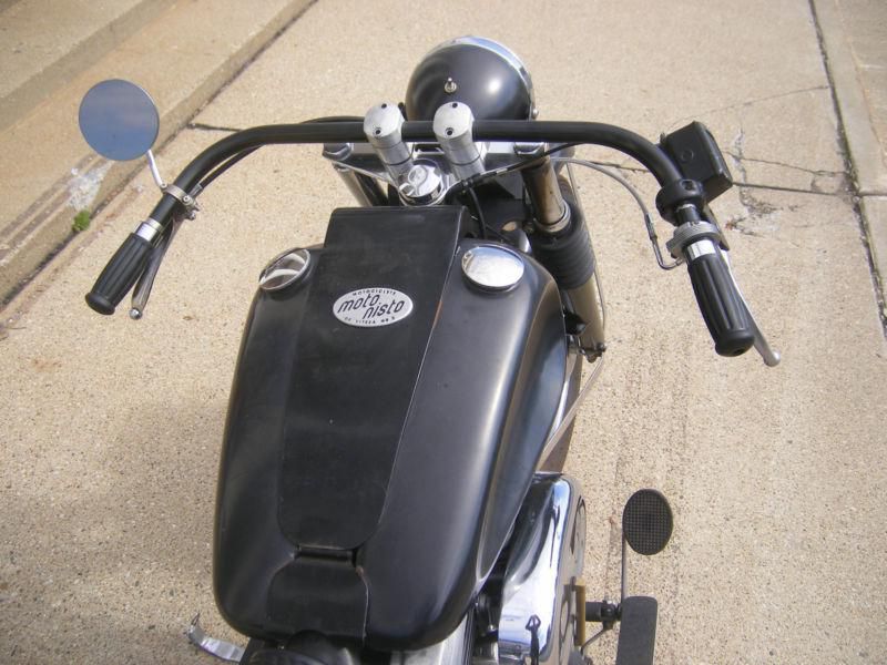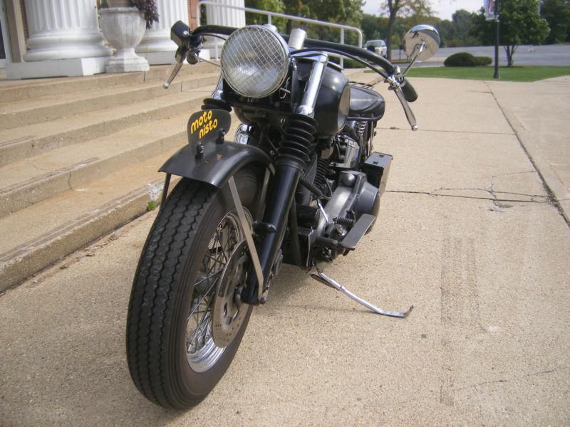 Built by Motonisto, the nr2 combines early century styling with a more modern powertrain. This super reliable bike uses a 1985 Harley Davidson Evolution engine and a Softail frame (yes, this bike has hidden suspension on the rear section of the frame for smooth gliding over bumpy roads!). Mileage is unknown as speedometer was removed for simplicity, but is estimated at around 40000- 50000. It is very dependable and simple to maintain, with plenty of parts available. Electric starter was also removed along with horn and turn signals. It is about 50 lbs lighter than it was when new. The kickstarter is predictable and once the procedure is learned one can start it in 2-3 kicks. Most of the parts are original Harley for ease of replacement. The body panels are custom made. The rear fender is hinged for easy access to rear tire. The dashboard was replaced by a glove-box between the gas tanks. Handlebars are made of 0.125 wall Stainless Steel. Seat is early British style replica. Transmission is a newer ratchet top replica using internals by Andrews. A Sportster air box was adapted for crankcase breather. Wiring consists of headlight, taillight/brakelight, ignition and charging, very simple. If you're more into cafe racer then check out my other auction.