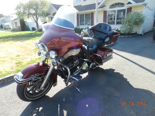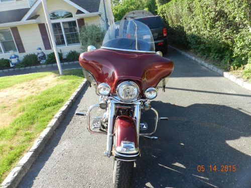2000 Harley Davidson Ultra Classic, FLHTCU-I, Luxury Rich Red, just received Full service, This touring bike has been garage kept and well maintained. 36982 miles, Very good condition, Heal/Toe Shifter, Footboards for rider and passenger. 2 windshields (Clear-full size & Tinted-short size) windshield 3 pouch organizer, Just inspected., LOTS of Chrome, Multi-color LED lights underseat The Ultra Classic Electra Glide has all the features of the Electra Glide Classic, and more. The 'Ultra' offers electronic cruise control, 40-watt-per-channel, 4-speaker, AM/FM/WB cassette sound system, separate passenger radio controls, CB, intercom and headset. The King Tour-Pak is carpet lined -and comes with soft luggage liners as well as dual tail/stop lights for added visibility and style. Its power source is the Twin Cam 88™ engine, glittering with chrome and fed by sequential port fuel injection, standard. -Bat-wing, fork-mounted fairing |