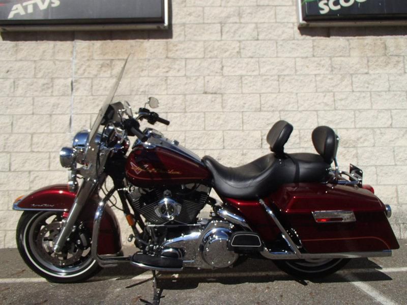 Welcome to J and J Motors Inc. We are a Honda, Yamaha, Suzuki, Kawasaki dealer, In Massillon Ohio. We also specialize in late model clean used bikes! 2008 HARLEY DAVIDSON FLHR ROAD KING IN RED WITH GOLD FLAKE!!! This price will be good till end of listing only. The bike is in EXCELLENT condition with the exception of lite marks on the front fender and right bag !!! (see pics) THE BIKE IS VERY NICE AND RUNS GREAT!!!! THIS BIKE HAS VANCE AND HINES PIPES [please see photos] If you have any questions, or would like to fill out a credit app. please call 1-800-762-5993 OK THE LEGALS!!!... Please call 1-800-762-5993 and ask for * BRANDON * for full details ... if you choose to hit "buy it now" an automatic $500 pay pal deposit is taken out. All deposits are NON REFUNDABLE Full payment must beCASH IN PERSON, Certififed BANK CHECK ... NO PAYPAL FOR FULL PAYMENT OR CREDIT CARDS, THANKS ! ... and, Fee's are as follow... Arizona.................6.00% California.............6.00% Florida..................6.00% Indiana.................6.00% Massachusetts....6.00% Michigan..............6.00% South Carolina...6.00% Washington.........6.00% WE RESERVE THE RIGHT TO END AUCTION AT ANY TIMEBUYER RESPONSIBLE FOR ANY TAXES DUE, WE COLLECT TAX FOR THE FOLLOWING STATES! (You only pay once Ohio just handles the collection of the appropriate tax and passes it on to your state)