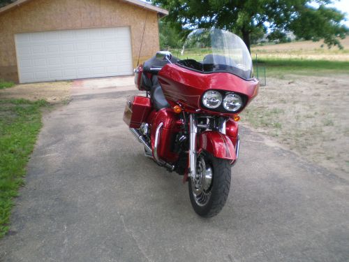 This is a 1 owner Motorcycle. It was purchased brand new from the dealer and now it is time to sell. The miles are low at under 10,000 (9947). The Road Glide offers a frame mounted fairing, weather band/AM/FM radio, CD player, headphones with rear hookup, cruise control, Travel Trunk and hard side bags. Includes the original book. 2 key fobs. (Security system fobs) Maintenance has been done each year at a Harley dealer. Chrome foot pads for passenger, and foot pads for driver. 103 cubic inch engine. Tires are original. Nothing has been added or changed on the motorcycle. We will accept Cash/money orders/cashiers checks. Pick up only, no shipping. The motorcycle will be sold "As Is". Please ask if there are any questions or more pictures are wanted or needed.