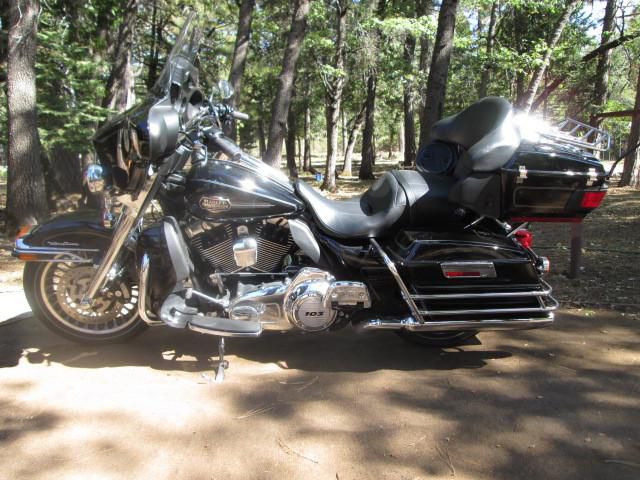 BEST BUY ON EBAY I bought this motorcycle used on Ebay from the original owner with 4274 miles in Jacksonville, FL on 5/19/13 had it stored at the dealer till 8/25/13 we pick up the motorcycle and rode 5243 miles to Shingletown, CA parking the motorcycle in the garage with 9517 miles on it. We live in Alaska and would like to sell this Harley to you. 2012 Harley Davidson FLHTCU Electra Glide Ultra Classic motorcycle with ABS brake system, security system and some up grades Chrome front forks package, luggage rack, slotted clutch and brake levers, air gauge replace with oil temp gauge, rubber shorty antennas, trunk cable reel, windshield pouch, rear speakers J&B Hure 5252 GTM and (5) year mechanical and tire road hazard warranty good till 3/3/17 $80 transfer fee. Stock items with the motorcycle (2) two keys & security fobs, (2) two headset, air pump for shocks, a set of (3) three saddle bag liners and manual. The motorcycle runs great tires are good and finish good no chips, dins or dents two or three small scratches on lower right hand gas tank so small they will not show up in pictures. The motorcycle is parked in Shingletown, CA ready to ride home or pick up. $500 cash deposit at close of auction must a Paypal account. Thanks PS factory warranty good till 3/3/14. I take off the heel shifter because my size 14 boot it is in the trunk.