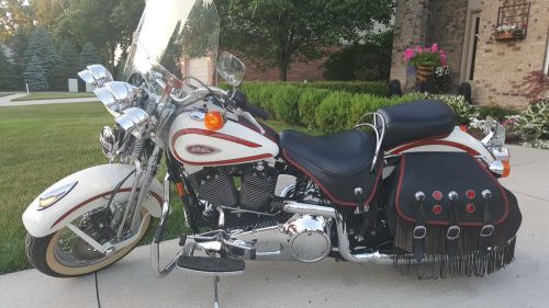 97 Springer Anniversary. Have been stored since 2006. Just serviced. New Fluids, Battery and Carb rebuilt. The tires are original and will need to be replaced. The M/C is completely stock. It has a small stone chip on the front of gas tank that is in the pictures. This is a beautiful motorcyle. I'm Posting for my Father in law so I can try and answer any questions you might have. 734-777-5606. More pics and Video at your request. Clear Florida title but it is stored currently in Michigan.