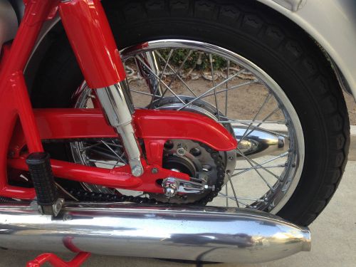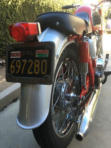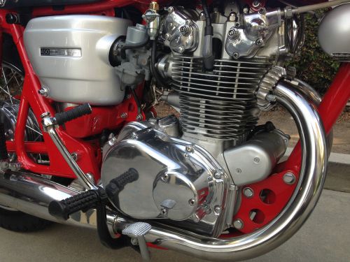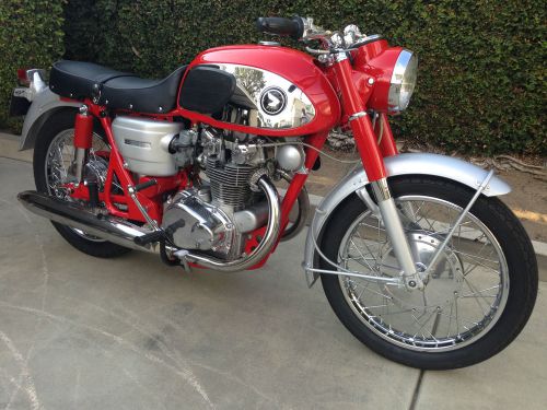 The cases were split and completely cleaned. The top end was rebuilt: new cam rollers, new cam chain, cylinders honed, new rings installed, valves lapped, new valve stem seals, and new engine gaskets and seals. Aluminum engine cases and cam covers, were polished to a chrome like finish, and the body of the engine was painted with high-temp aluminum engine paint. I did not powder coat the frame. I could not find a powder coat color that was close enough to the factory red. The Red colors that I found always had an orange tint in the sunlight. I found an actual can of factory Honda scarlet red paint that I was able to computer match and spray the bike with the absolute factory identical red paint!!! I still have the factory sample paint jar which will come with the motorcycle. This cost me A LOT more than it would cost to powder coat the bike!!. The fenders, side covers and fork tubes are painted cloud silver. The wire harness, rectifier, starter solenoid, and speedometer were completely refurbished and rebuilt by RJ cycles. My buddy Ronnie Jennings does amazing work! The speedometer, tachometer, and odometer all work perfectly. Look him up at rjcycle.com. Both original DID rims were re-chromed and new spokes added. The front and rear aluminum hubs were polished and installed with brand-new brake shoes. Both wheels have chromed axles and chromed hub linkage. New Duro tires were installed, they are the closest to a factory size and tread that I could find. They look great. The rear sprocket it is an OEM sprocket with a new DID chain. The carburetors are original to the bike they were ultrasonically cleaned and rebuilt. The air filters were in very good shape..I blew them out, cleaned the paper elements and reinstalled them. The gas tank has re-chromed side panels, original rubber knee grips, beautiful reproduction 450 badges, re-chromed original gas cap with cork seal, brand-new petcock and lifetime "rust free" inner tank lining. GTL of Los Angeles treated and sealed the tank. The gas tank is pristine! The original handlebar switches are polished. The horn, high and low beam, and electric start buttons all function perfectly. The bars are brand-new OEM Honda. I believe they are for a CB400F model. I prefer the lowrise look so I used those. The handlebar grips are originals, the driver and passenger foot pegs are reproduction rubber for 1965-1967 Honda CB 450's made by Clauss Studios and the gearshift and kick lever, rubbers are from Ohio Cycle. The front forks have re-chromed ring collars and sleeve covers with brand-new fork seals inside. The fork tubes are currently dry as to not blow the seals during shipping. The front end also has brand-new steering races and bearings. The triple clamp has been polished and the perches, clutch lever and brake lever are new. The center stand assist grab bar, the gearshift lever many other bolts and nuts have been re-chromed. The original starter motor was rebuilt and functions perfectly. Kick starter lever was re-chromed and works perfectly as well. The original Honda Elephant horn is also installed. For some reason right now it makes a weak squawk but it did function before. The front brake, throttle, and clutch cables are spot on reproductions made by Charlies Place of Los Angeles. The tachometer cable is original. Both cable guides in the front fender are vintage OEM gray color as are both spark plug insulator caps. The seat was reupholstered by Southbay upholstery. Hai does fantastic work and he does all of the Garage Company's seats! We used the original strap buckles and rivets. They were re-chromed and installed. The locking knob is an aftermarket part, the rest of the pieces are original. The taillight is original as well as the red tail light lens. The cover has been re-chromed and the aluminum lens housing polished. The Ignition switch is the original 4 stage switch with original key and 60's "Honda wing" key chain! Functions perfectly. The exhaust is original to the bike. They are one solid piece... The headers do not slip into the mufflers like the 1965 K0 450's. They sound great and the baffles are still installed. The pipes were prepped for chroming but I did not re-chrome them. They look good the way they are now but they are not perfect. You can leave them the way they are but if you do you will need to polish them periodically since zinc is exposed in some areas and does oxidize over time. This causes the right header to "blue" but it wipes off. The header did not blue before the pipes were prepped . The right side also has some small dings, scrapes and light surface rust on the bottom...zoom in and check out the pictures closely.... I think they look great..I'm being honest and don't want the buyer to have any surprises...remember, these are 50-year old original pipes! Also included in the auction is the very rare 1965 factory Honda owners manual in excellent condition! License plate is an original California black plate with the world-famous BUD EKINS Sherman Oaks dealer license plate frame! Brand new gel battery. The bike runs, revs and drives great!! Shifts smoothly through all 4 gears. The engine sounds fantastic!!... has no clatters, clanks or knocks of any kind! Does not blow any smoke! I have a CLEAR CALIFORNIA TITLE in my name. Please ask any questions you have as I may have left something out! Here is your chance to own a very classic piece of Honda motorcycle history! A great addition to any collection. *****The bike was on display at the 2015 PROGRESSIVE INTERNATIONAL MOTORCYCLE SHOW in Long Beach California. It was also on display at DEUS EX MACHINA's front window in Venice California for 5 months. This motorcycle was also featured in MOTORCYCLE CLASSICS MAGAZINE May/June 2016 issue and OLD BIKE MAGAZINE Aug/Sept 2016 issue. #60. The Dragon was the final chapter in the movie documentary "THE GREASY HANDS PREACHERS" featuring Shinya Kimura, Roland Sands, Deus Ex Machina, Blitz, El Solitario and myself. The "ELUSIVE RED DRAGO