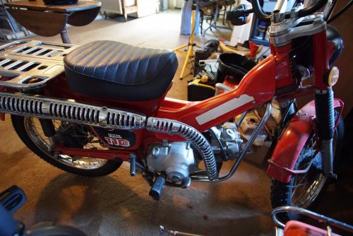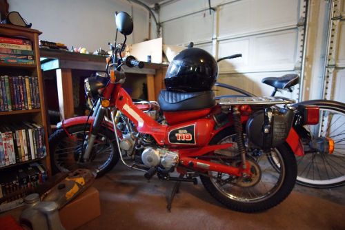 Hasn't been registered since 1992. The original owner died in '13, but I have his title and affidavit of transfer from the DMV. Helmet not included! New Honda CT110 Handlebars from the Australian market (CT110s are still in production there) New bulbs all over New tires (only 1 has been put on because I wanted to change the tubes too, but only had 1 tube) New mirrors New left and right controls on the handlebar New taillight bracket New battery (needs to be charged) New headlight bucket New air filter New front brake cable New chain New carburetor Probably more that I'm forgetting. Its been ridden less than a mile since the last oil change. All of the wiring has been gone over and soldered as necessary by an ASE Certified mechanic. Selling it due to excessive nagging about it taking up space... I prefer cash upon pickup. |