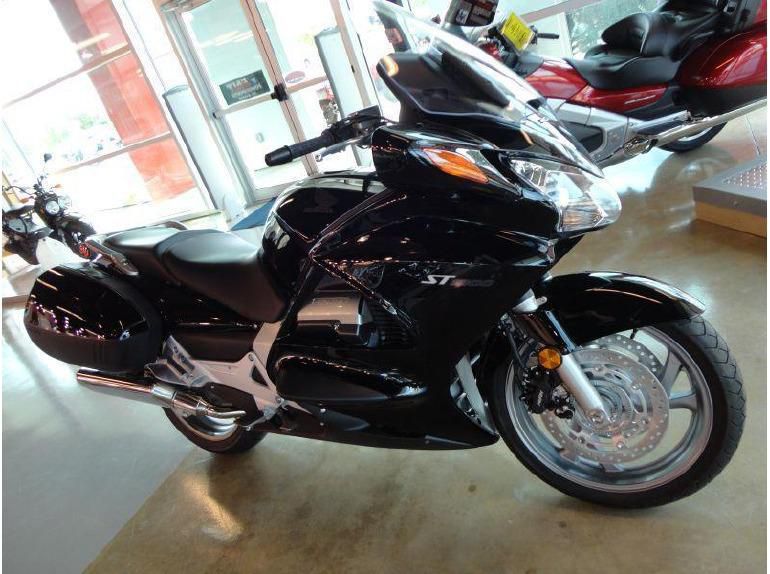 2012 Honda ST1300 ABS, ST1300The Honda ST1300A s special blend of touring comfort and sporty performance has made it an enduring favourite among riders who like to travel long distances often by the most twisty, out-of-the-way, boy-this-is-fun routes. Its ultra-smooth 1,261 cc V-4 engine with Honda s PGM-FI electronic fuel injection delivers a seamless spread of power and torque, while the twin-spar aluminum frame contributes to agile handling on those squiggly-line-on-a-map roads. And when you re exploring new areas, it s comforting to know that the ST1300A s Dual-Combined Braking System with ABS is always ready to help when the unexpected happens. Weather-resistant hard saddlebags lock on or clip off with a single latch, making them easy to carry into your tent or hotel room. Want to vary the ergonomics during a long day in the saddle? The plush, supportive seat has three height settings with three fore and aft positions, and the electrically adjustable windshield raises or lowers at the push of a handlebar-mounted button. So pick a destination anywhere on your road map, and get going. Your Honda ST1300A is ready to show you the world like you ve never seen it before.