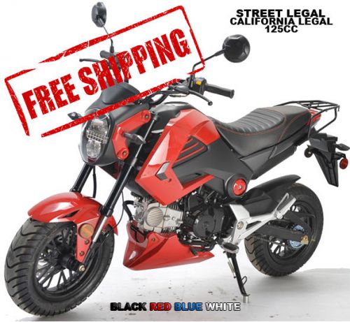 Brand New Street Legal Honda Grom Clone available in BLACK RED BLUE White " Message the color you want after purchase" THIS IS NOT A HONDA GROM IT IS A HIGH QUALITY CHINESE COPY Fast Shipping Free Shipping to Your Door with Lift-Gate California Legal High Quality Digital Gauges Same Size as Grom 90 Day Warranty 1 year engine and frame Warranty BOOM MOTORS GROM CLONE - Street Legal You will receive your new motorcycle within 7 days after purchase. You will receive your MCO needed to get your Title within 2 weeks. Shipping: ALL shipping IS FREE to your DOOR WITH LIFTGATE OR BUSINESS ADDRESS EXCEPT ALASKA AND HAWAII. Items will be shipped in crate. Minor assembly required. Please do double-check before riding. Check for loose nuts and bolts cause by vibration. Each MOTORCYCLE AND ATV will come with a Bill of Sale and MCO for you to register title. Auction Terms: Please contact us within 3 days after end of auction to arrange for payment. We accept all credit cards, Paypal, wire transfer, money order, cashier check. Warranty: We have a complete line of parts. The MOTORCYCLE/DIRT BIKE has a 90 DAYS limited warranty on engines. Warranty does not cover natural wear and tear, like tire or brake pads, plastic body, seat, lights, shocks, and battery. Etc... Warranty does not cover accident or collision damage. If there is damage to any parts when received, must notify us within 3 days for warranty to be valid. We will provide the replacement parts free of charge, but not the labor and freight. When replacement parts are required for repair during the warranty period, please return the defective parts to us at your cost. Our trained professionals will conduct examination and determine appropriate parts. Please be reminded that replacement parts will not be shipped until after we received and tested the defective parts. All sales are final, no returns or refund.