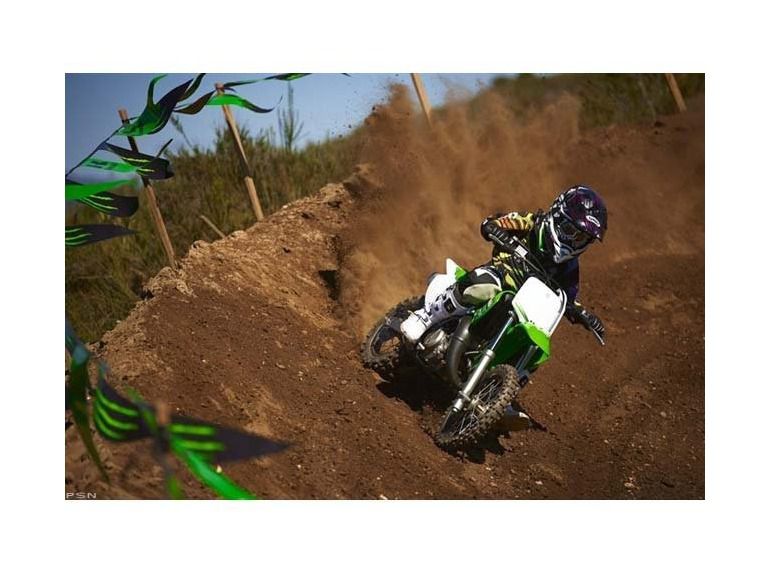 2013 KAWASAKI KX???65, Starting Gate Starting PointGoing for the Checkered Flag When kids watch their favorite pro motocross rider tear around the nations tracks, they often dream of doing so themselves. Kawasakis compact KX65, with its powerful two-stroke engine, lightweight chassis, disc brakes and long travel suspension provides the right tool to help them make the grade as a young racer getting a first taste of competitive riding.