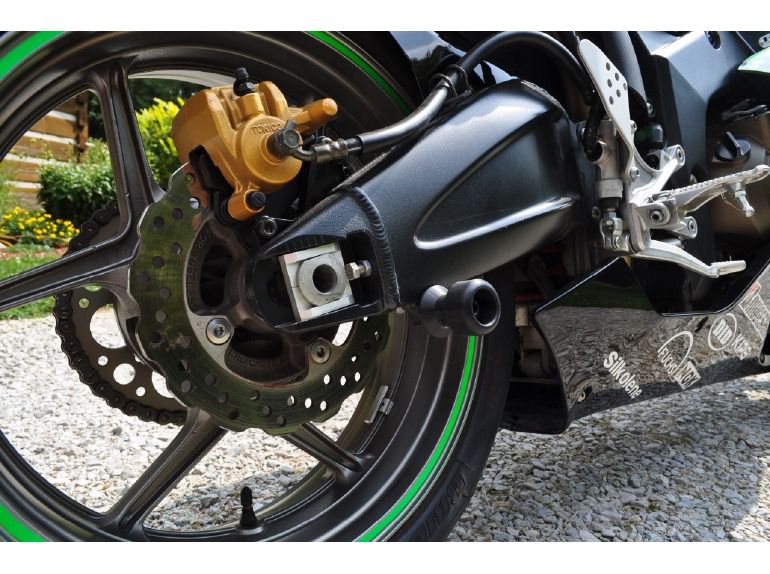 2006 Kawasaki Ninja 636, 2006 Kawasaki Ninja 636 (non California model) with 6,975 miles. Lots of mods: The bike has a full titanium Akrapovic exhaust system, a Dyno Jet power commander pc3 usb(you can hook it up to a computer and change air/fuel ratios). It also has a K&N air filter and K&N oil filter. It's -1 tooth on the front sprocket and +2 on the rear sprocket (those gear changes add a lot of torque for better acceleration). I installed a "cal-tech speedo healer" that resets the speedometer so it shows the correct speed after the gear changes. Also, various body mods, the fairings are after market, swing arm pegs (also used for the rear wheel stand) handle bar and frame sliders protect the bike from major damage in a slide. Aftermarket smoked wind screen, new "shorty" folding clutch and front brake levers by CRG. I have some touch up paint for it also (black, green, and metallic gold for the crank case cover.) There's a bike stand, Icon helmet, and Tour-Master mesh riding jacket I will consider throwing in. $5,500.00 7654270794