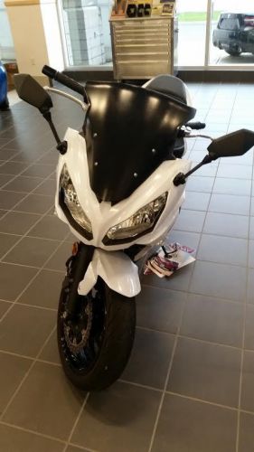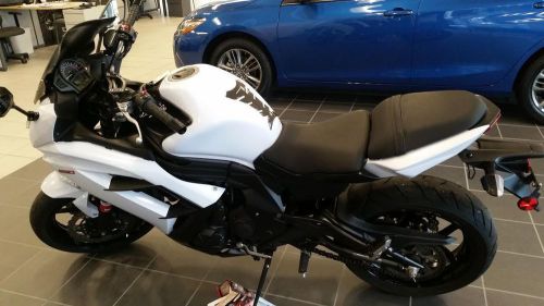 Up for sale NO RESERVE; is this very clean 2013 Kawasaki Ninja 650R with under 10,000 miles! The bike has never been in an accident and has never been down. There are 2 previous owners and it has always been maintained properly as recommended by Kawasaki. The pearl white paint should really stands out and the pictures don't do it justice. The only things that have been modified on the bike are the exhaust, and the painted windshield. The full exhaust system (which is rare due to the price for this style bike with the exhaust underneath the bike) is now nice and loud. The back tire only has about 500 miles on it and it will come with a new battery and fully NYS inspected. Please don't hesitate to contact me with any questions. PRICED TO SELL QUICK!! Very comfortable ride and an amazing bike for the money!