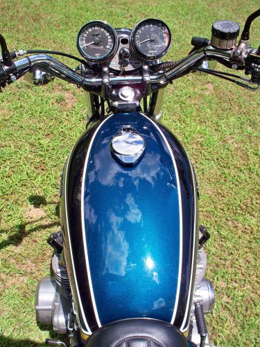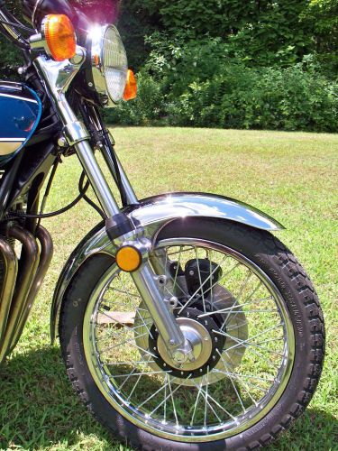 I completely restored this bike a couple years ago and its been sitting in my shop covered ever since. The bike was completely taken down the frame and painted parts taken down to bare metal and painted with PJ1 frame paint. The engine was completely disassembled inspected and rebuilt. There was no frame damage and the bike has never been down to my knowledge. The bike starts nice and runs and drives and shifts very nice. There are no oil leaks and the bike is like new very close to show quality. The small owners manual is in fair condition for its age. There is no tool kit . The bike has 5 miles on it and needs to be broken in like a brand new bike. The original exhaust is all thats missing for it to be %100 original and complete. The 4 into 1 exhaust thats on there now I believe is an old school Yoshimura pipe in decent shape.The frame # is Z1F-065202 and the engine is Z1E-065429 and the build date is 12/74 and is a matching #s bike. A list of new parts; 2nd overbore OEM piston and ring kit D.I.D cam chain APE valve guides Valve seals Vesrah gasket kit Clutch plates Rubber cam cap plugs All cables Wiring harness Coils, wires and wire # indicators Gauges restored Sealed battery and strap Seat Shocks Grab rail Directionals OEM fenders Dunlop gold seal tires, tubes and rim strips Original rims in nice shape re-spoked Brake pads front and rear Front master cylinder and brake caliper rebuilt Carbs rebuilt with new gaskets Fork oil, seals and dust caps Upper front fork ears and triple tree chrome caps Chain and sprockets and chain gaurd Handle bars and switch blocks Grips OEM lock set New neck roller bearings Kick start lever and shifter lever and brake lever and brake rod Front and rear foot peg assemblies Dyna S ignition Outer points cover Oil and air filter and all new fuel lines and filters Spark plugs THE BIKE COMES WITH A RECENT NEW HAMPSHIRE REGISTRATION AND BILL OF SALE AS THIS STATE DOES NOT TITLE BIKES OLDER THAN 15 YEARS OLD. WITH THIS REGISTRATION YOU CAN GET A TITLE IN ANYWHERE IN THE COUNTRY AND ALSO CAN BE USED FOR BIKES BEING SHIPPED OVERSEAS. INTERNATIONAL BIDDERS ARE WELCOME AND THANK YOU FOR LOOKING! ANY QUESTIONS PLEASE FEEL FREE TO ASK. ALL SALES ARE FINAL AND THE BIKE IS BEING SOLD AS IS. |